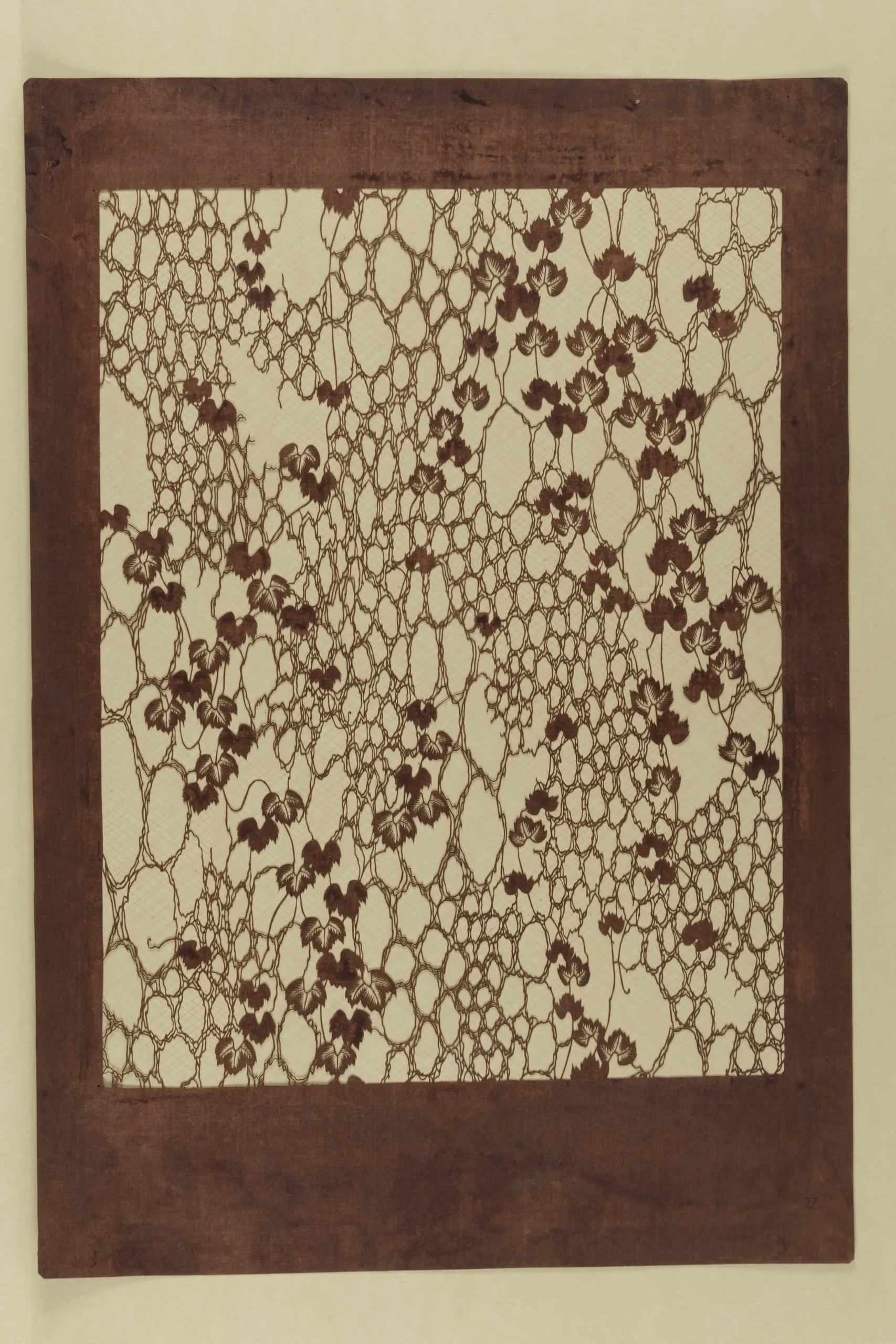 - Textile Pattern Stencil (Katagami) with Autumn Ivy on Pine Bark