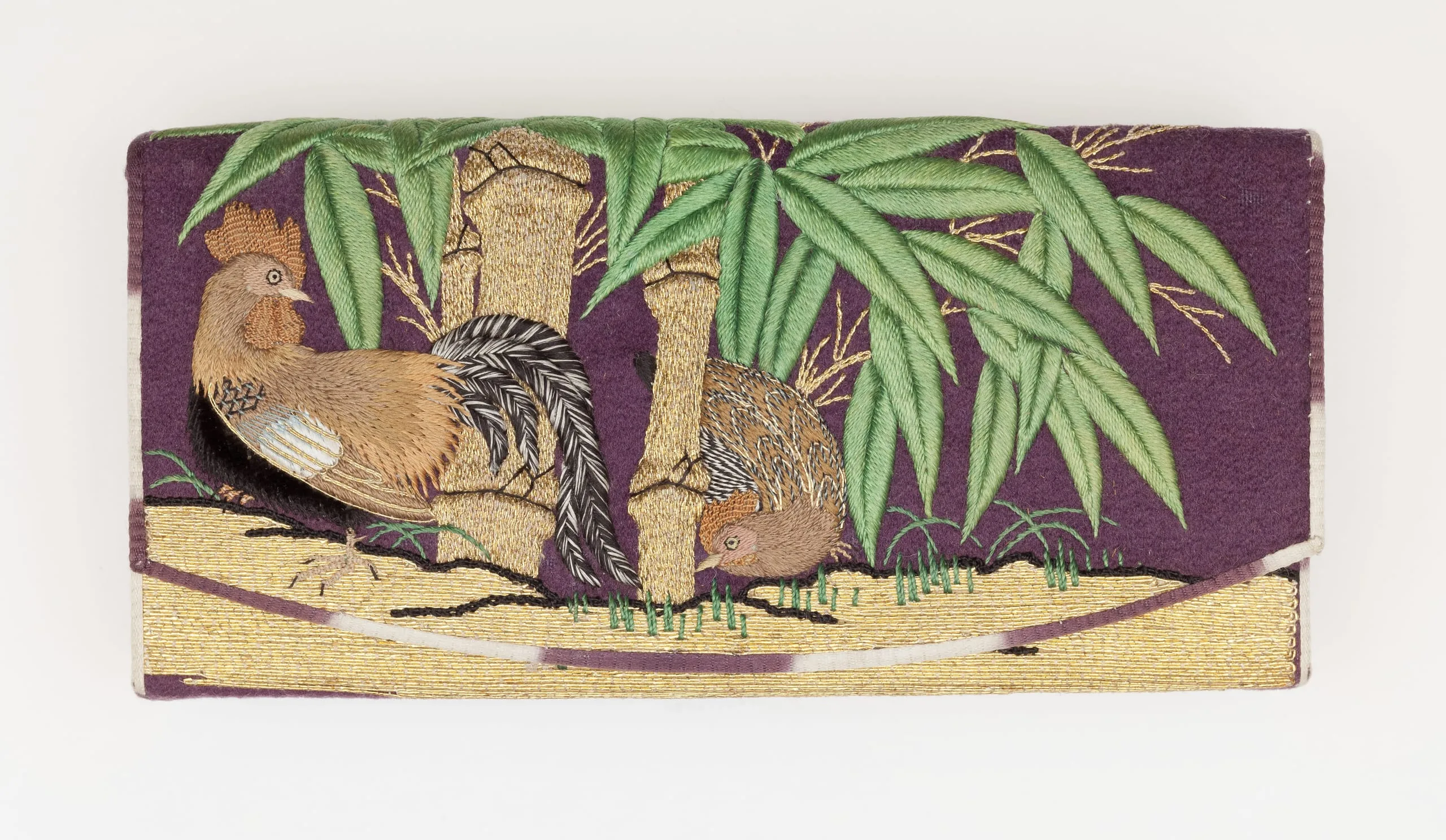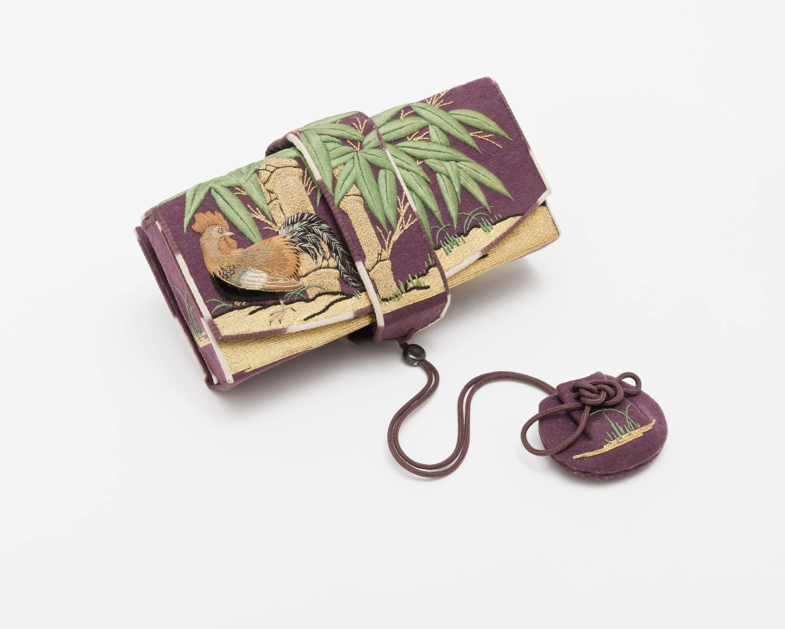 - Samurai-Class Woman’s Purse (hakoseko) with Rooster and Hen in Bamboo Grove