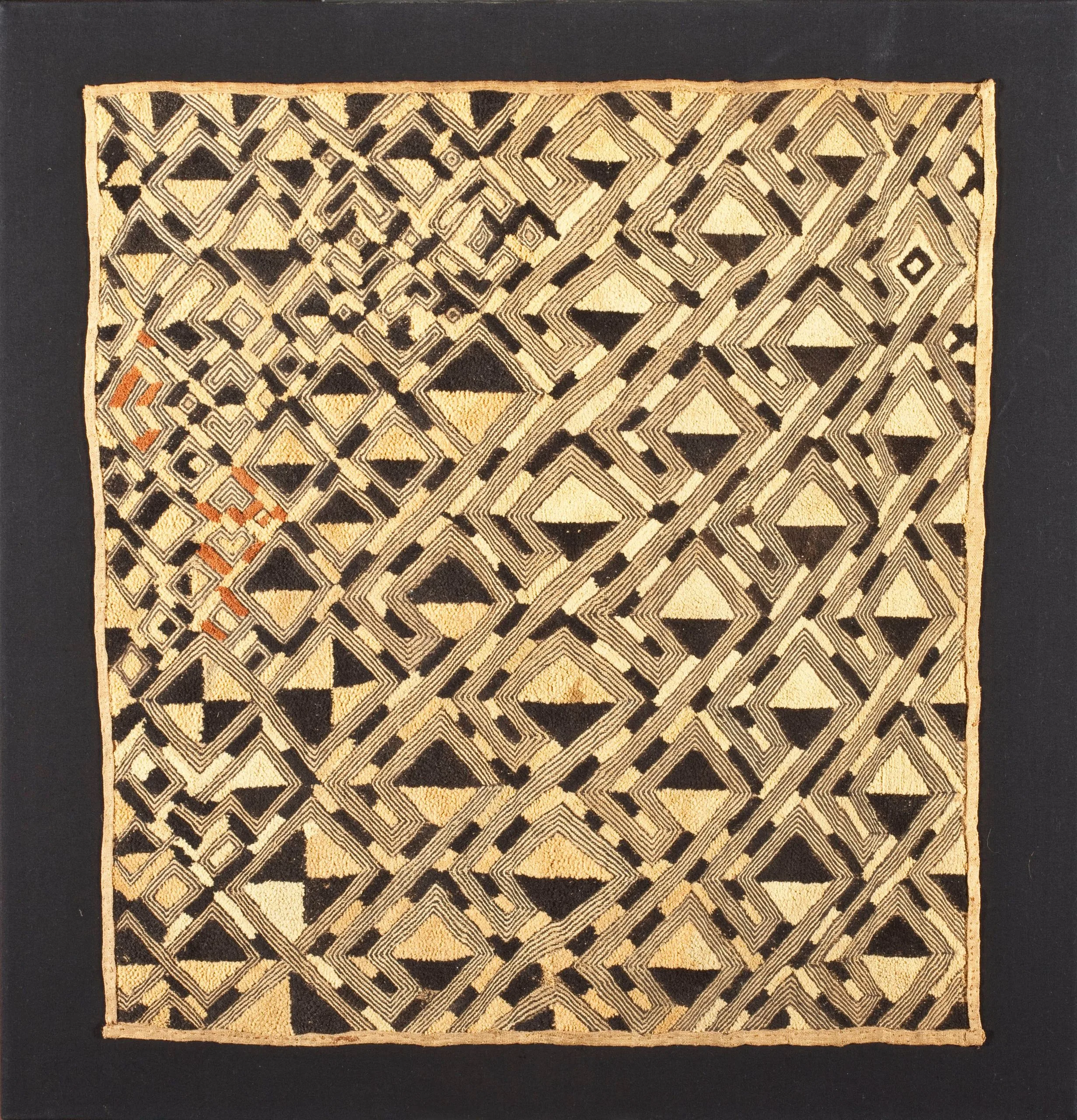 - Raffia-palm fiber plain weave with raffia cut pile and embroidery