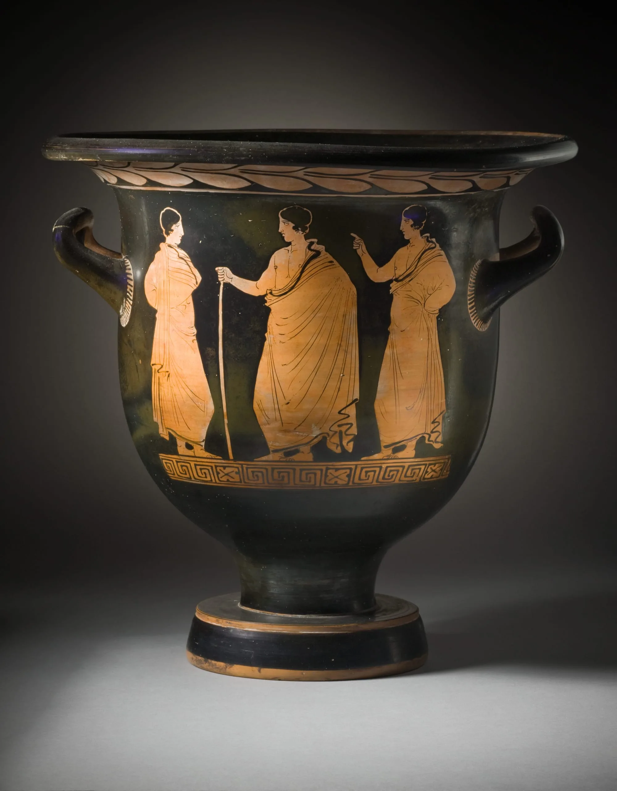 - Bell-Krater with (A) a Maenad Crowning Young Dionysos, Watched by a Horned Youth (Pan?), and (B) Three Youths