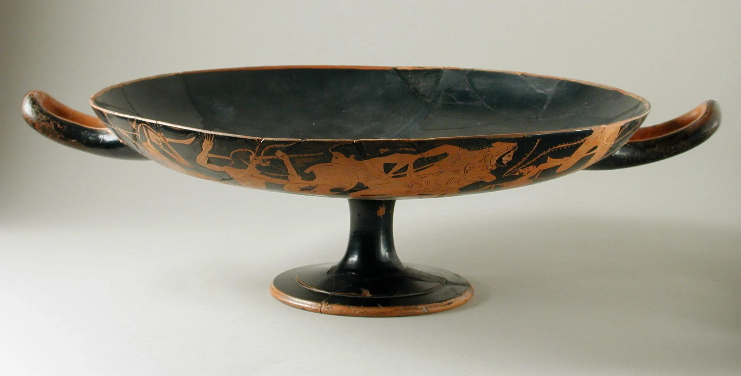 - Red-Figure Cup with (A) Herakles Battling Centaurs, (B) Herakles and Hermes at the Harnessing of Athena's Chariot and (I) Youth Preparing Couch