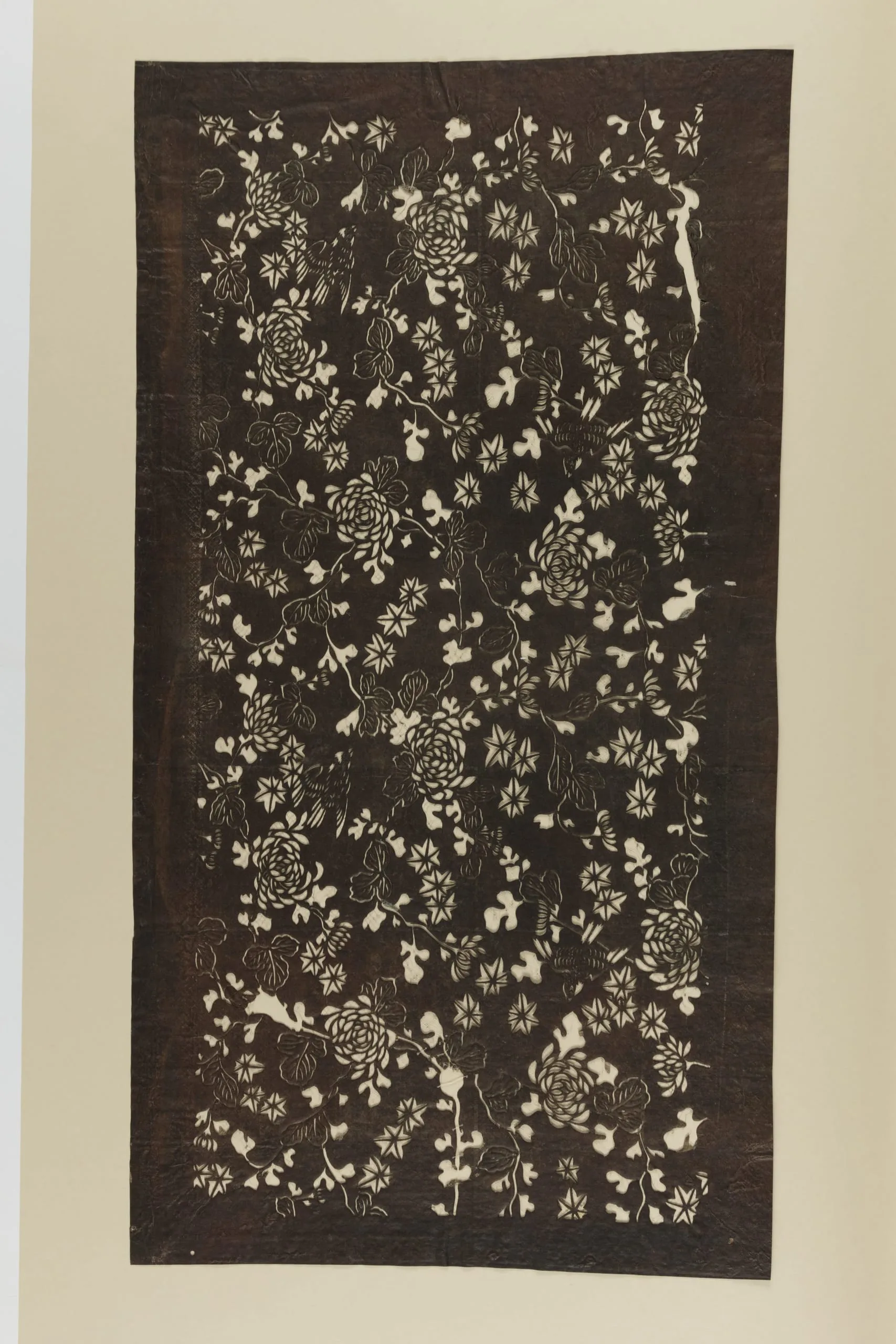 - Textile Pattern Stencil (Katagami) with Peonies and Sparrow