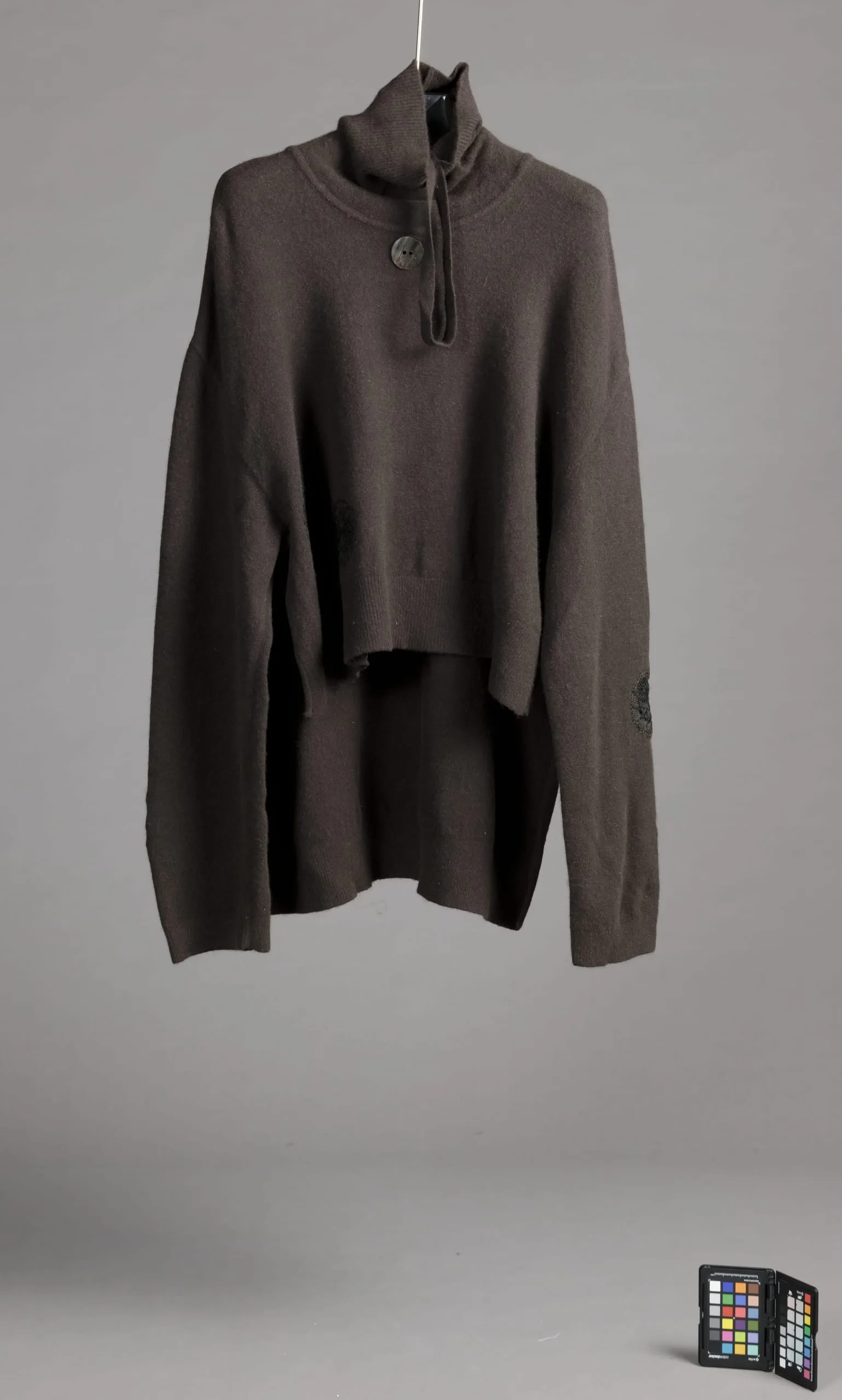 - Wool/elastane knit with wool crochet, wood button