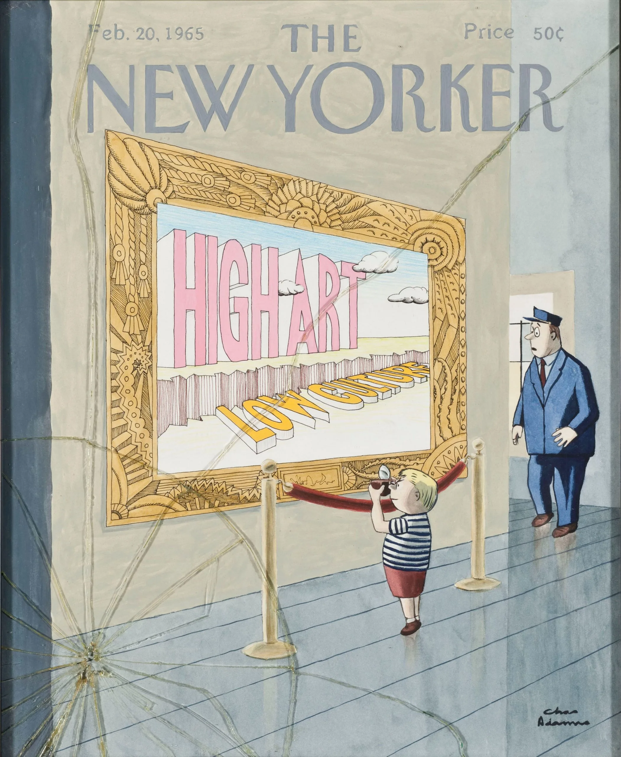 - Gouache and watercolor on paper and cracked glass