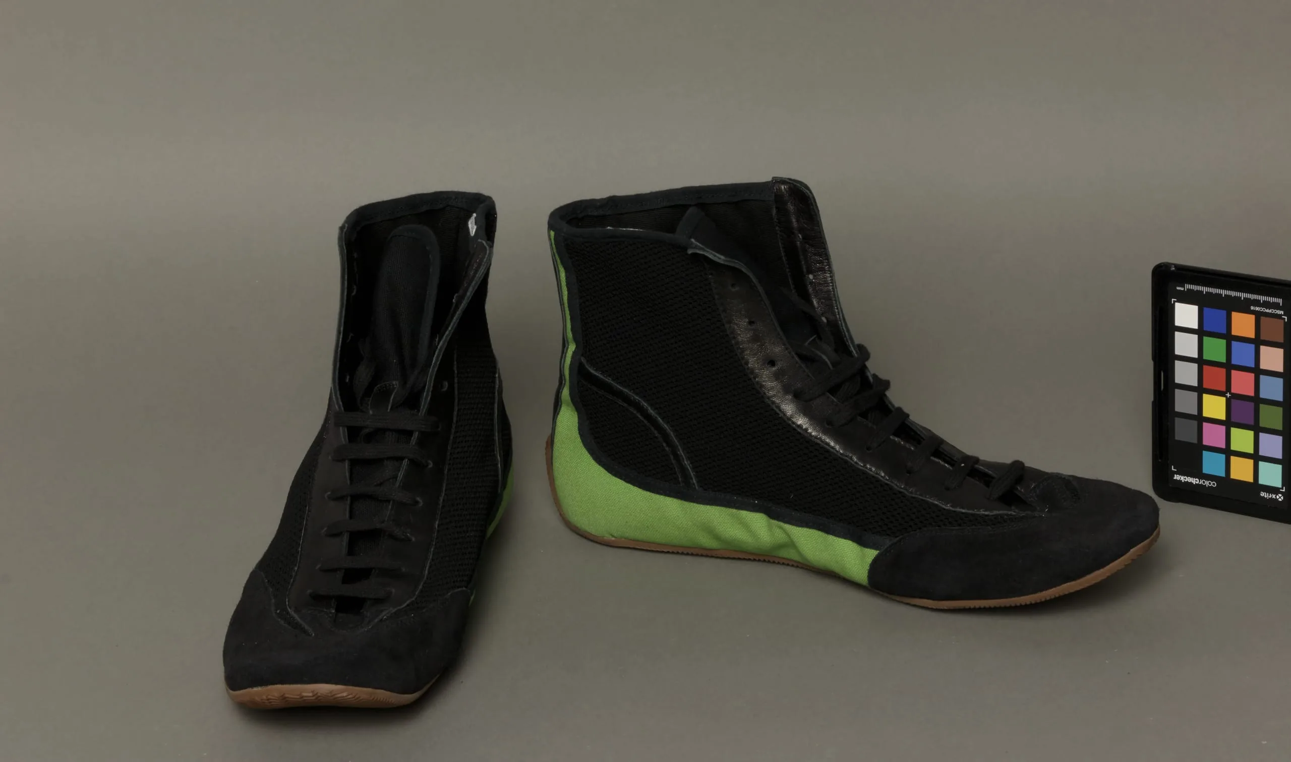 - Cotton plain weave, leather, suede, nylon knit, rubber, and cotton knit