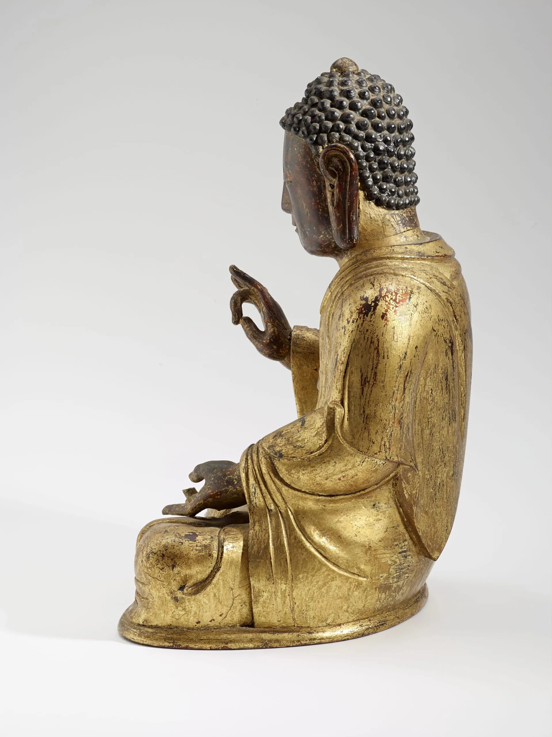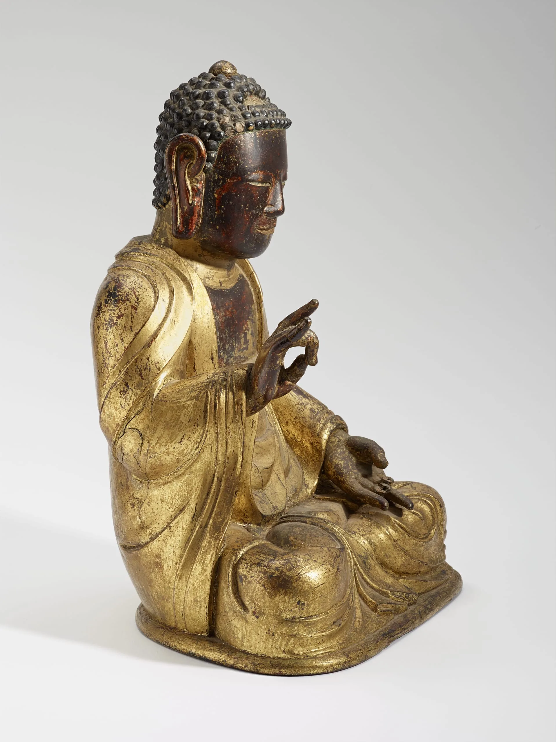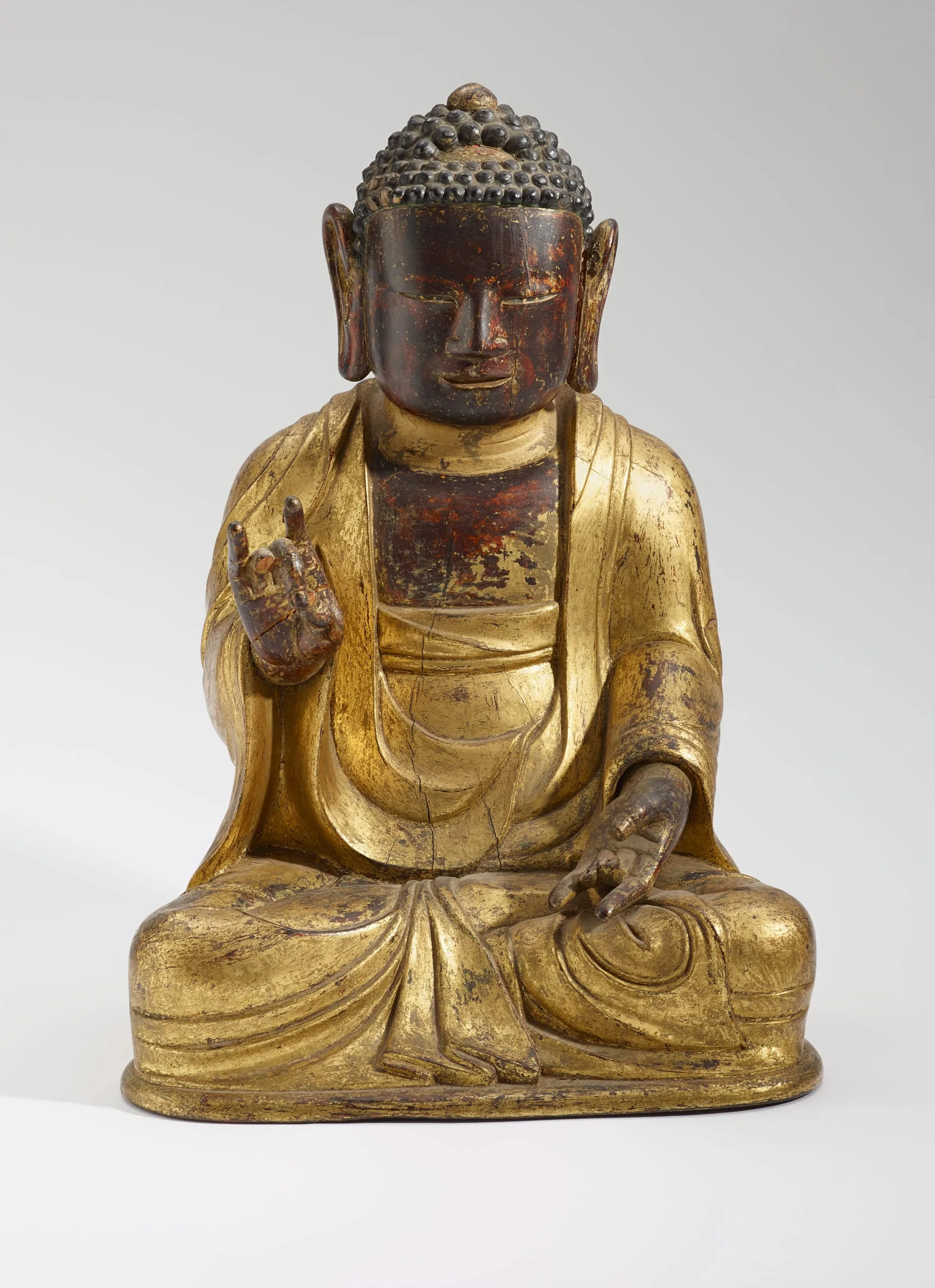 - Carved wood with lacquer and gilding, ink on paper, fabric, metal, paper, woodblock print