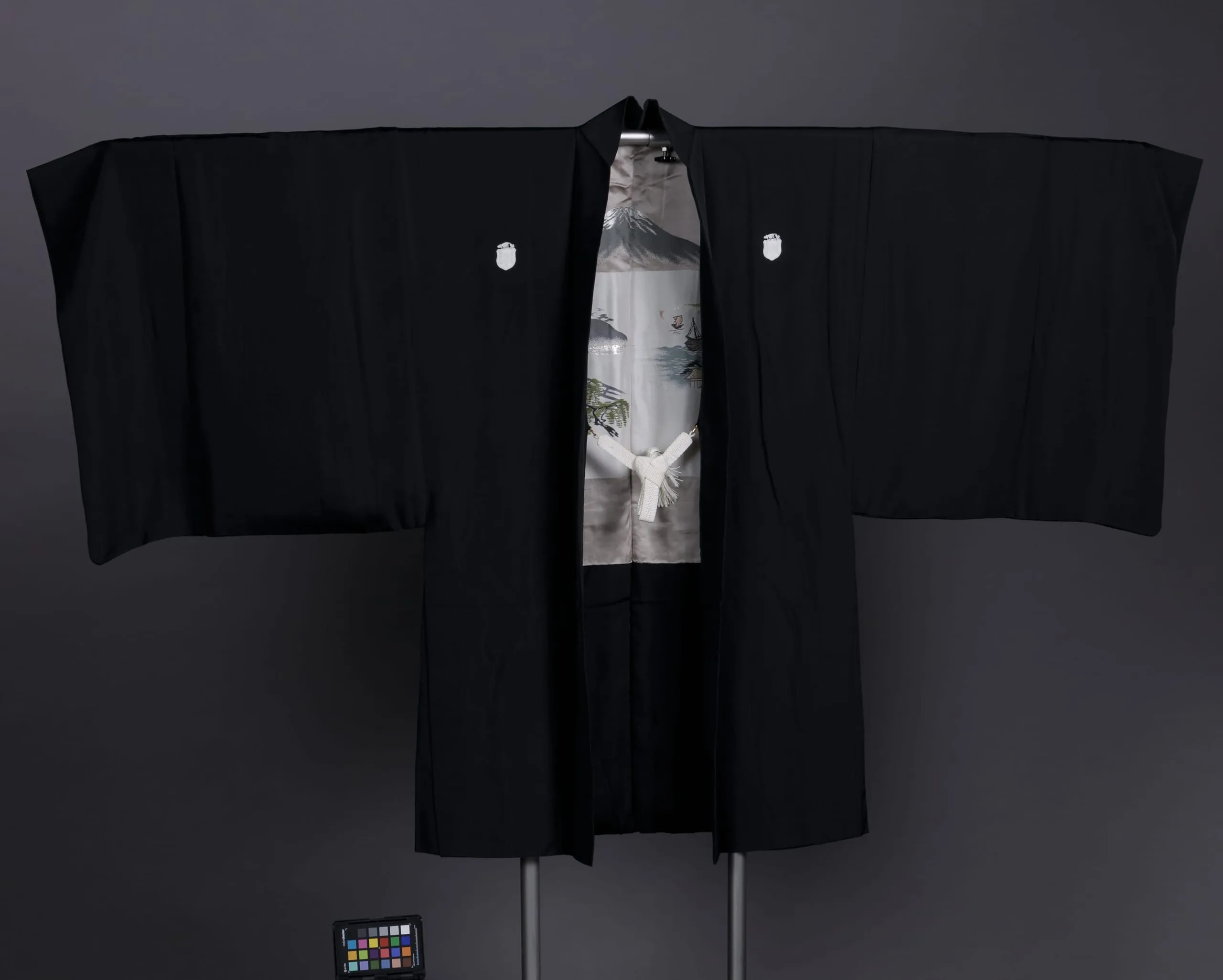 - Man's Formal Wedding Kimono Ensemble (Under Kimono (Juban), Kimono (Kuro Montsuki), Obi, Kimono-style Jacket (Haori), Obi, Bifurcated Skirt (Hakama), Three Pairs of Tabi)
