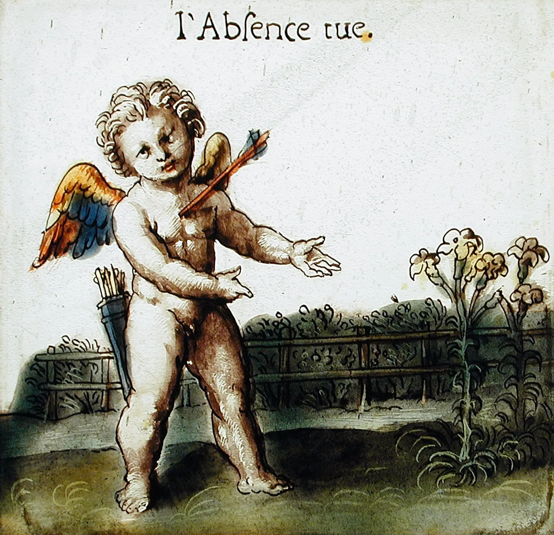 - White glass with bubbles; silver stain; vitreous paint; translucent enamels