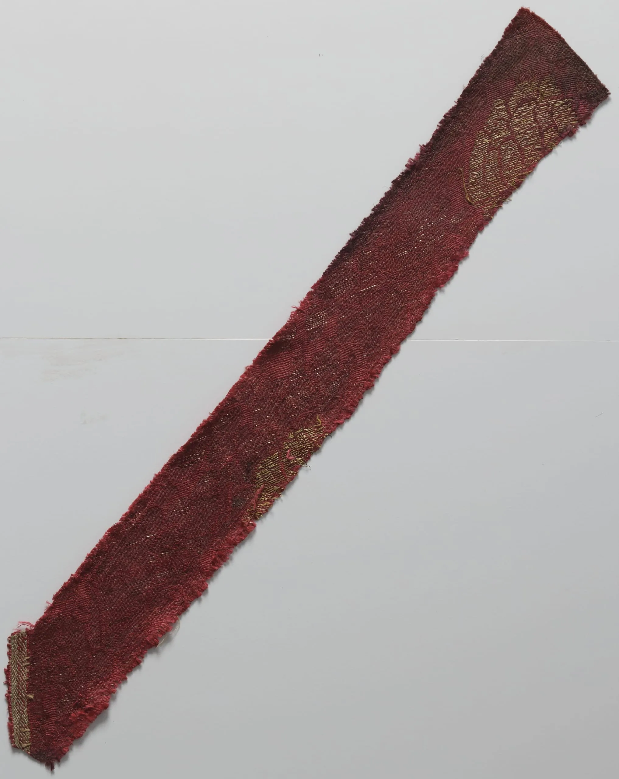 - Silk damask with metal-strip supplementary-weft and metallic-thread discontinuous supplementary-weft patterning (brocade)