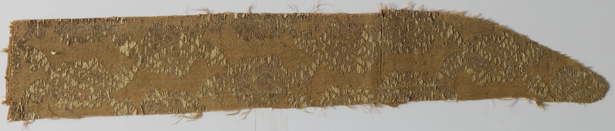 - Silk plain weave (faille) with metallic-thread discontinuous supplementary-weft patterning (brocade)