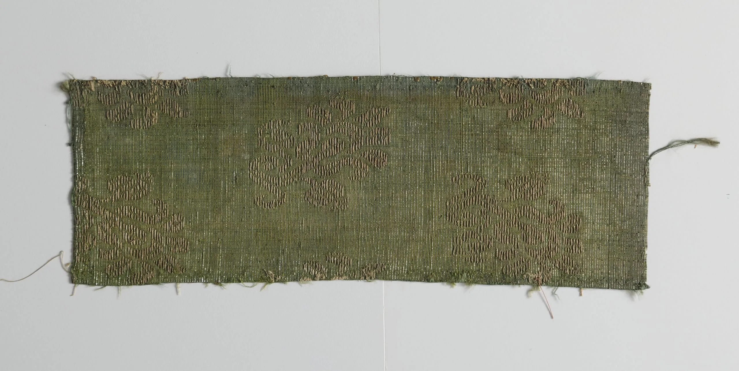 - Silk plain weave (faille) with metal-strip supplementary-weft patterning and metallic-thread discontinuous supplementary-weft patterning (brocade)