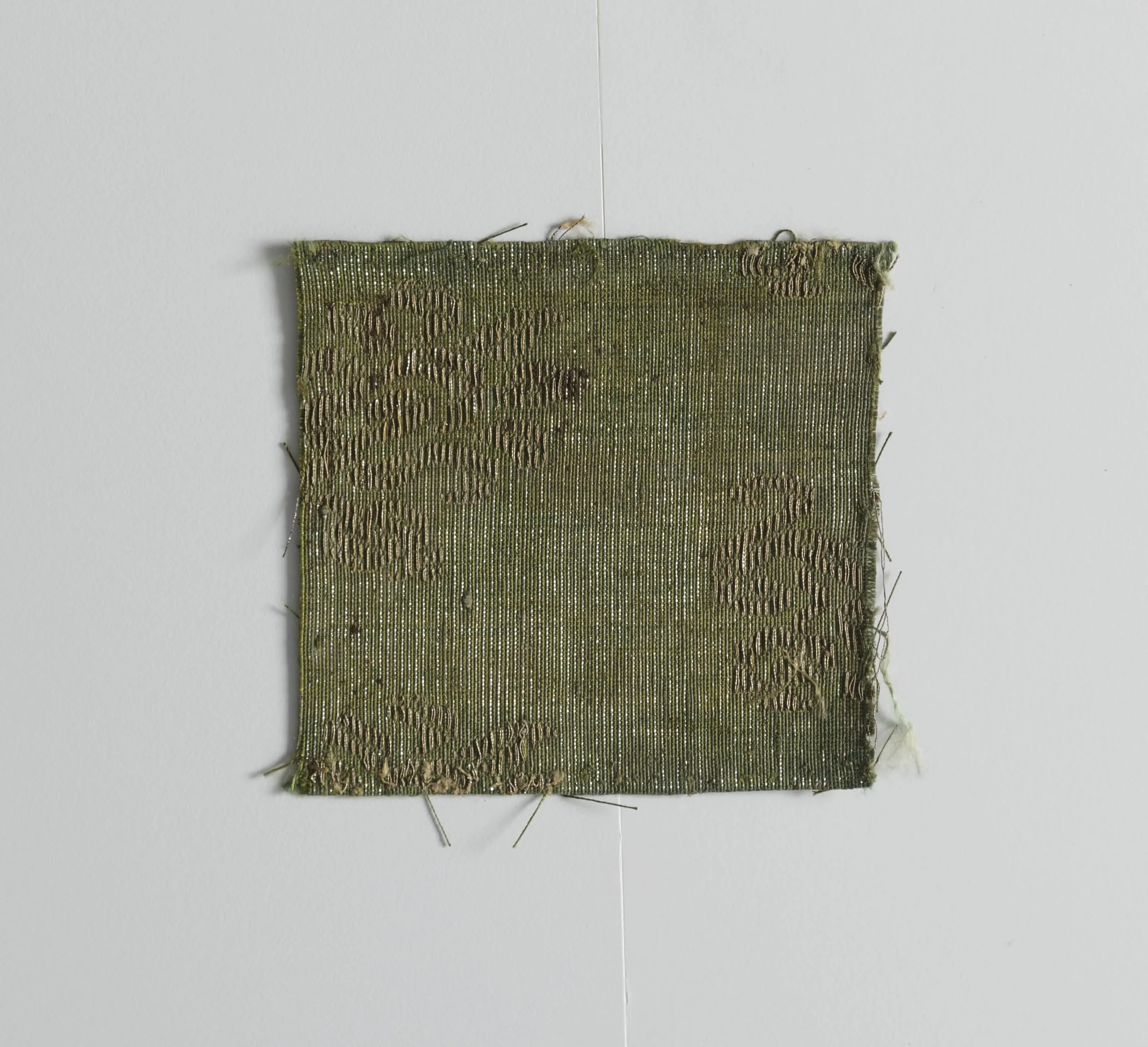 - Silk plain weave (faille) with metal-strip supplementary-weft patterning and metallic-thread discontinuous supplementary-weft patterning (brocade)