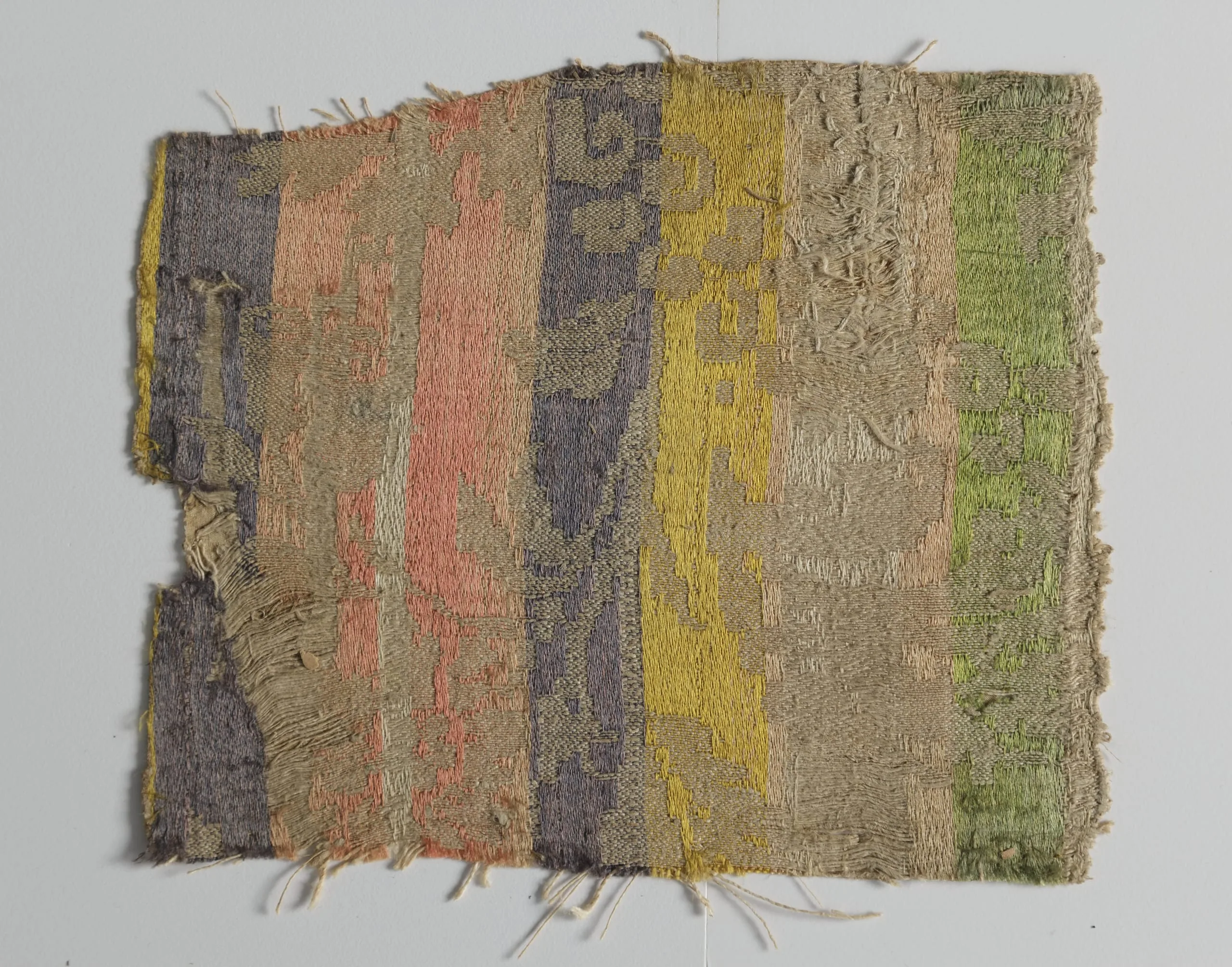 - Silk and linen satin with linen supplementary-weft patterning bound in twill (brocatelle)