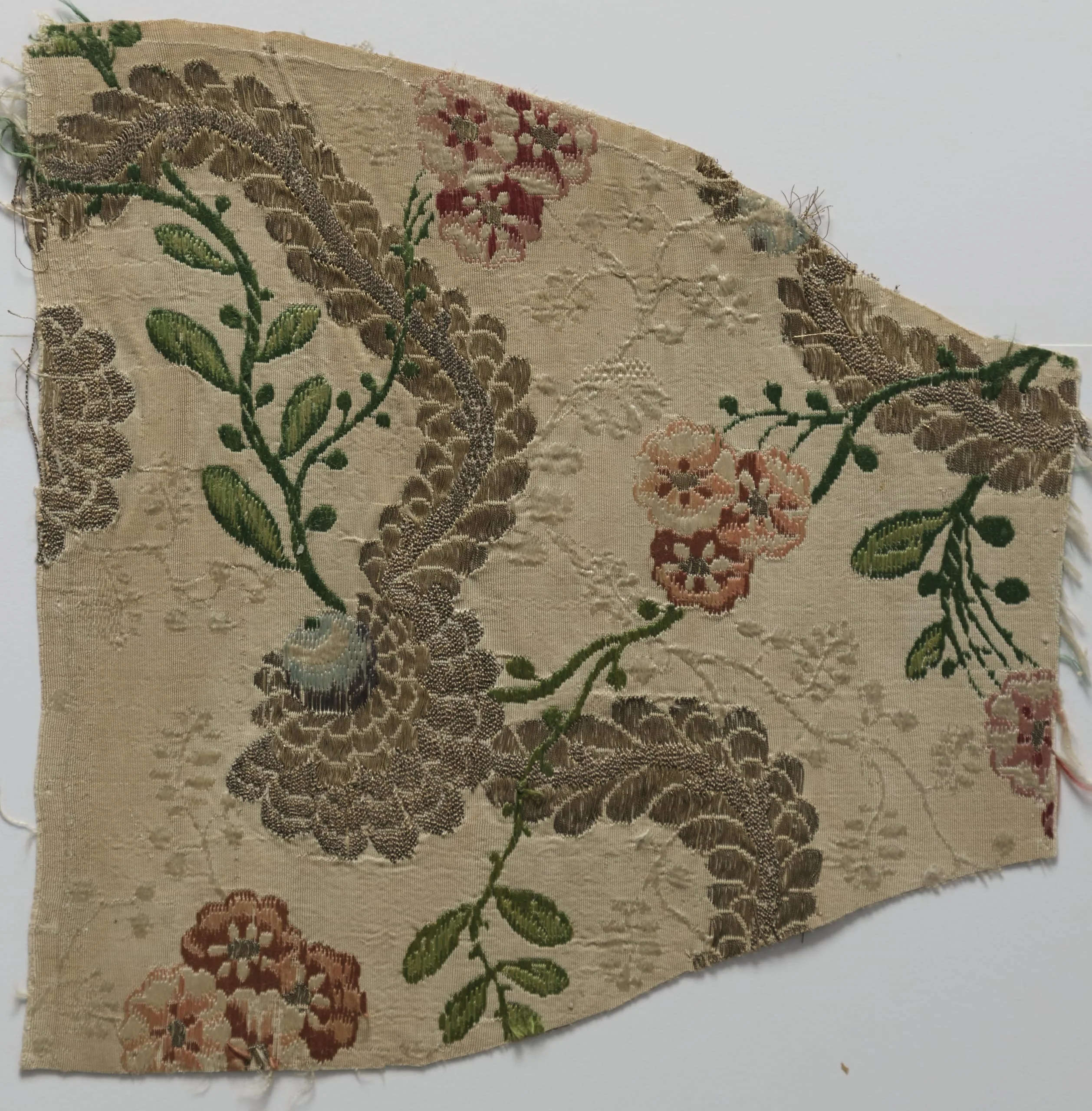 - Silk plain weave with silk weft patterning and silk and metallic-thread supplementary-weft patterning