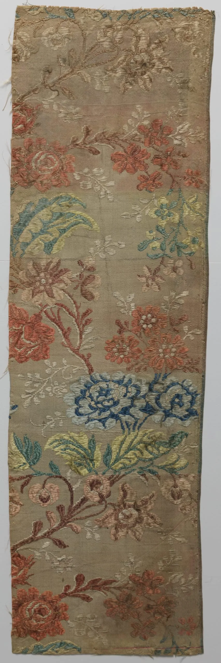 - Silk plain weave with silk weft patterning and silk supplementary-weft patterning
