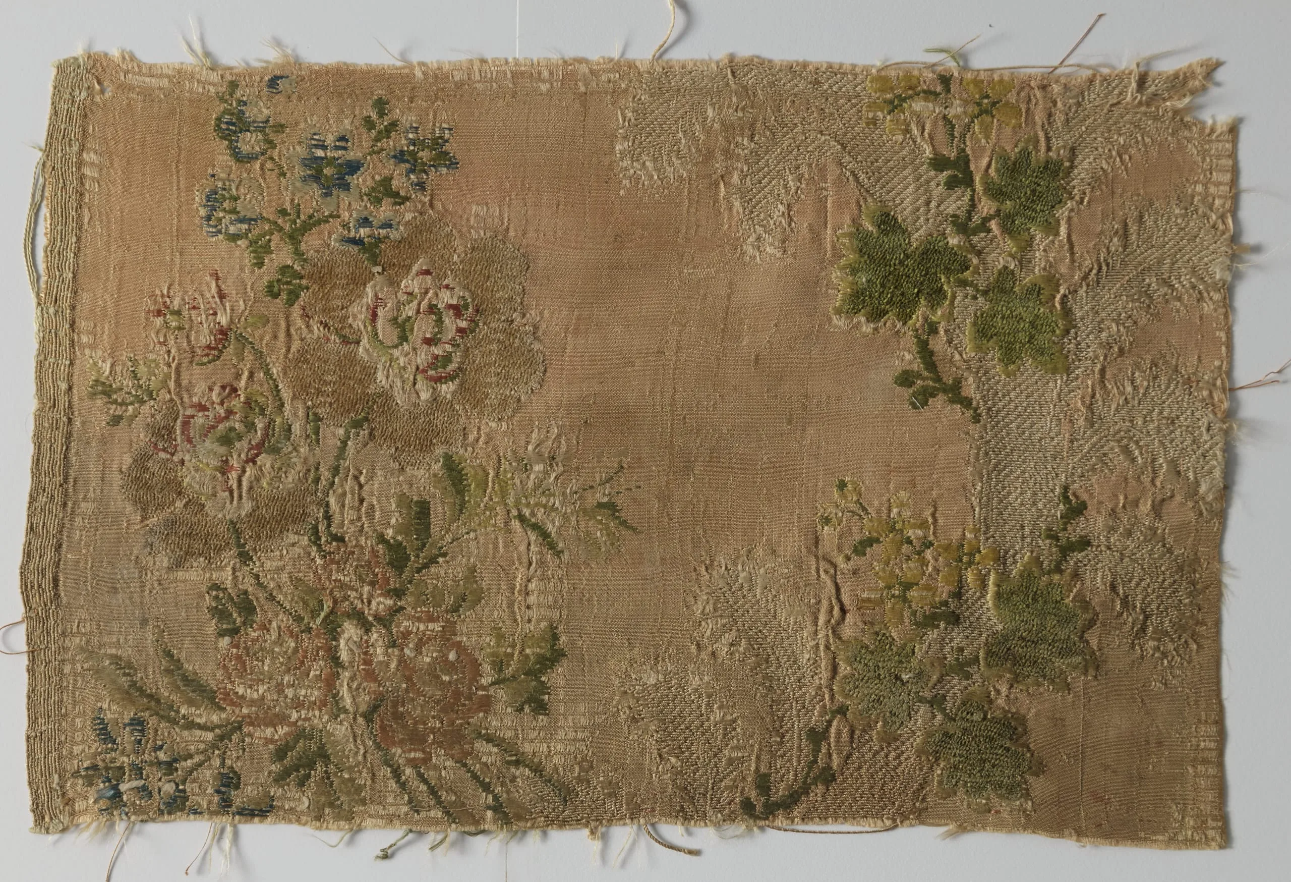 Silk plain weave with silk discontinuous supplementary-weft patterning (brocade)
