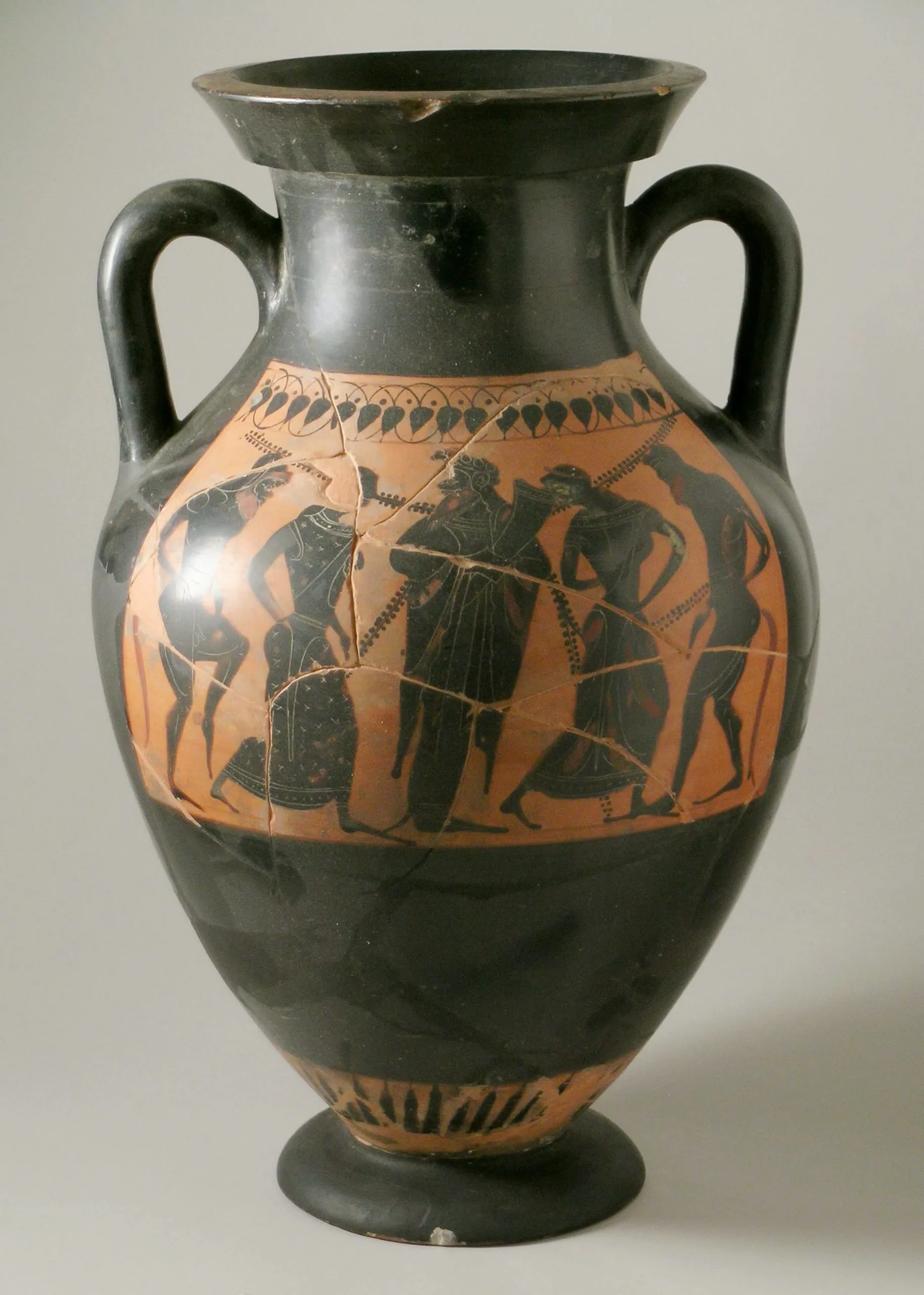 - Attic Black-Figure Amphora with (A) Dionysos, Satyrs and Maenads and (B) Battle Scene