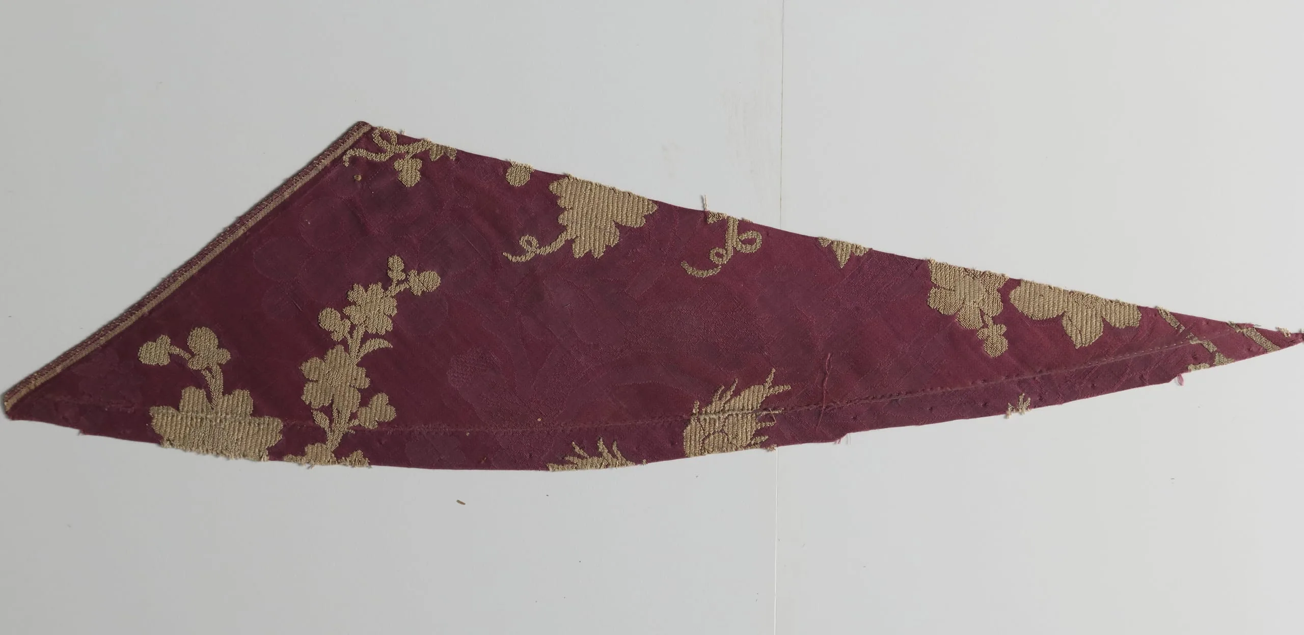 - Silk satin and plain weave (damassé) with metallic-thread supplementary-weft patterning bound in twill