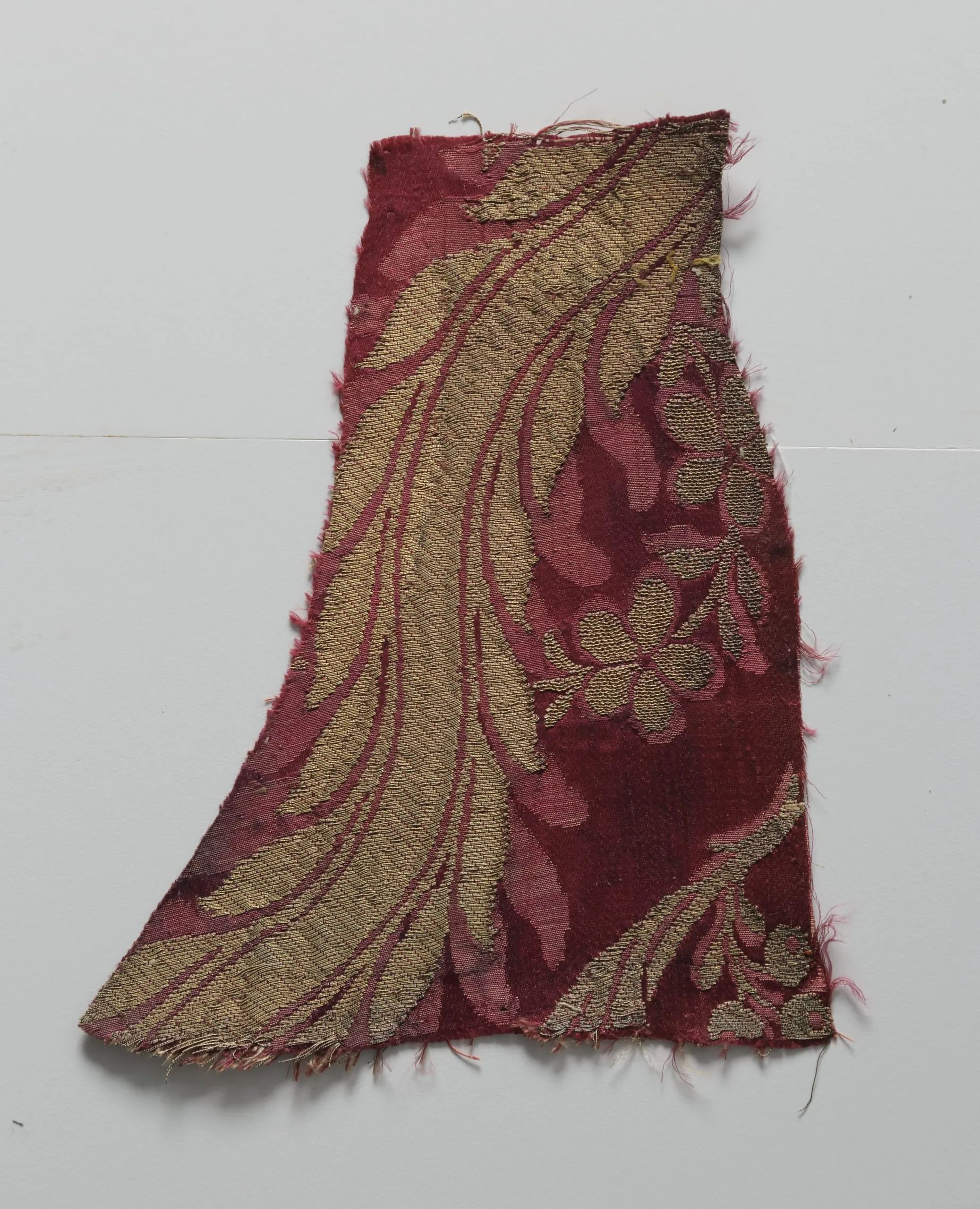 - Silk satin and plain weave (damassé) with metallic-thread supplementary-weft patterning bound in twill