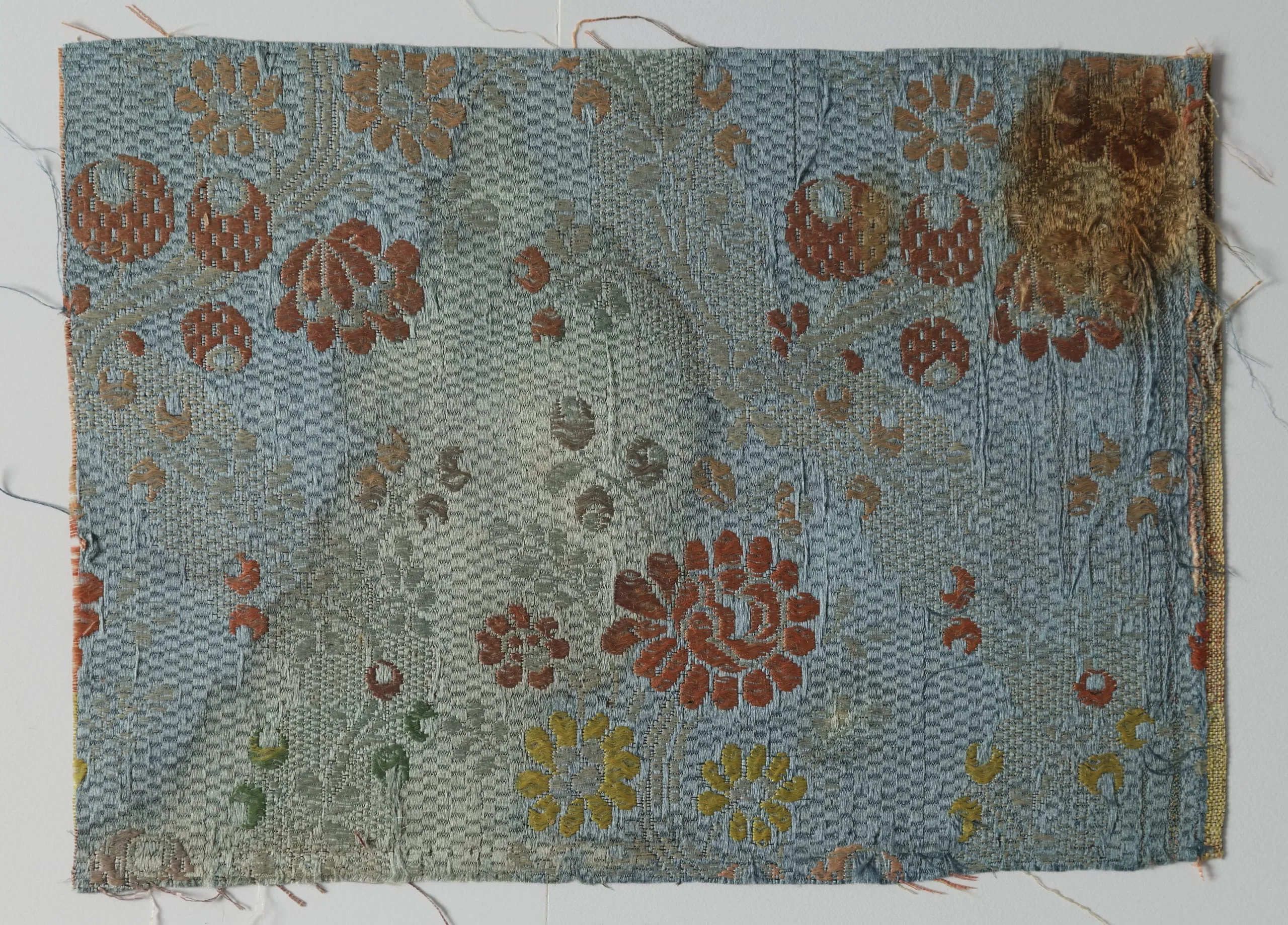 - Silk plain weave with silk warp patterning and silk supplementrary-weft patterning