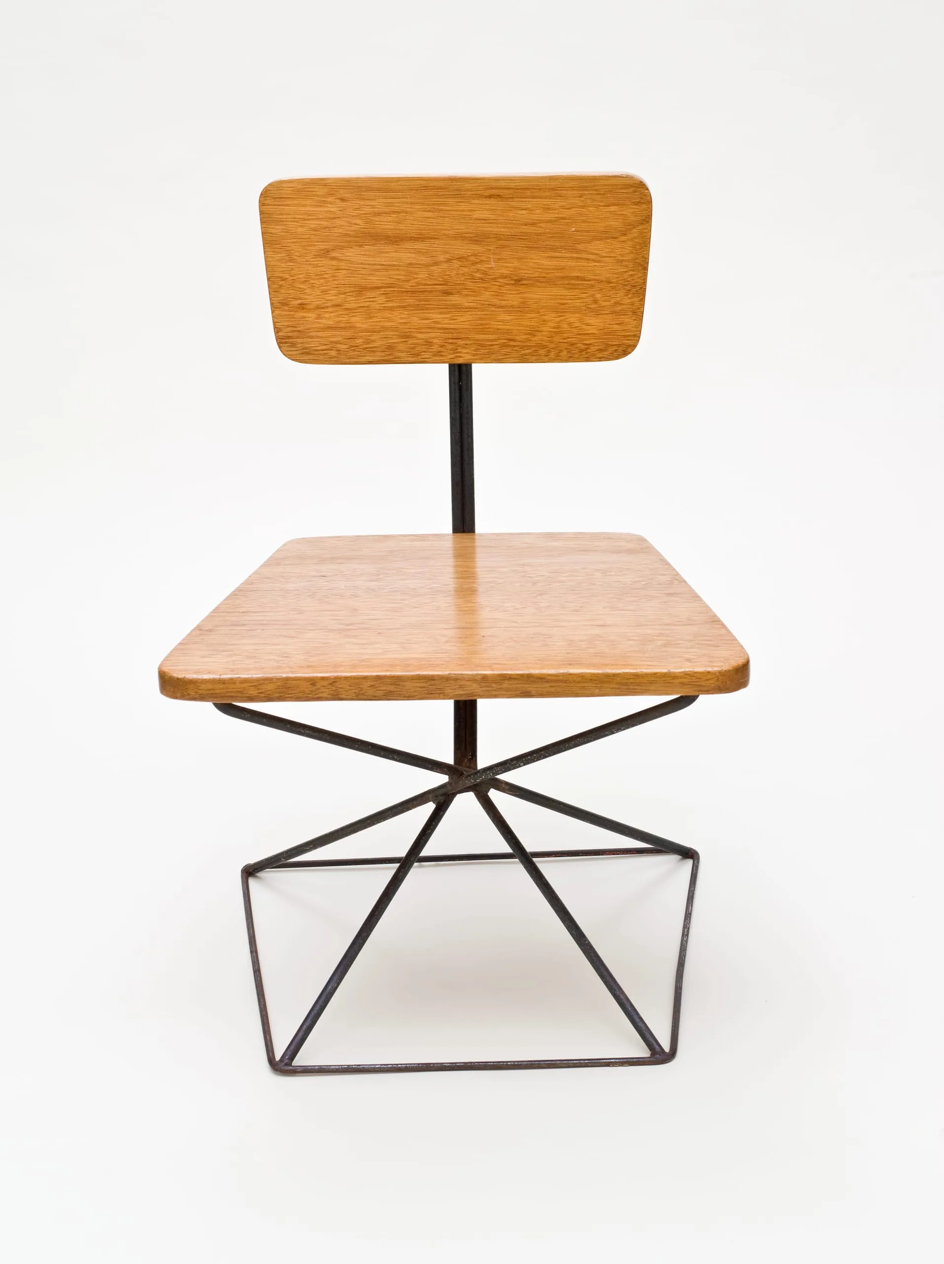 Luther Conover was a self-taught furniture designer and maker who settled in Sausalito after World War II. He initially used war-surplus materials but soon began sourcing his own wood and iron. This chair is from a line of furniture that was made of easy-to-procure materials and employed simple manufacturing techniques. Durable enough for both indoor and outdoor use, the line appealed to consumers furnishing modern homes on modest budgets.