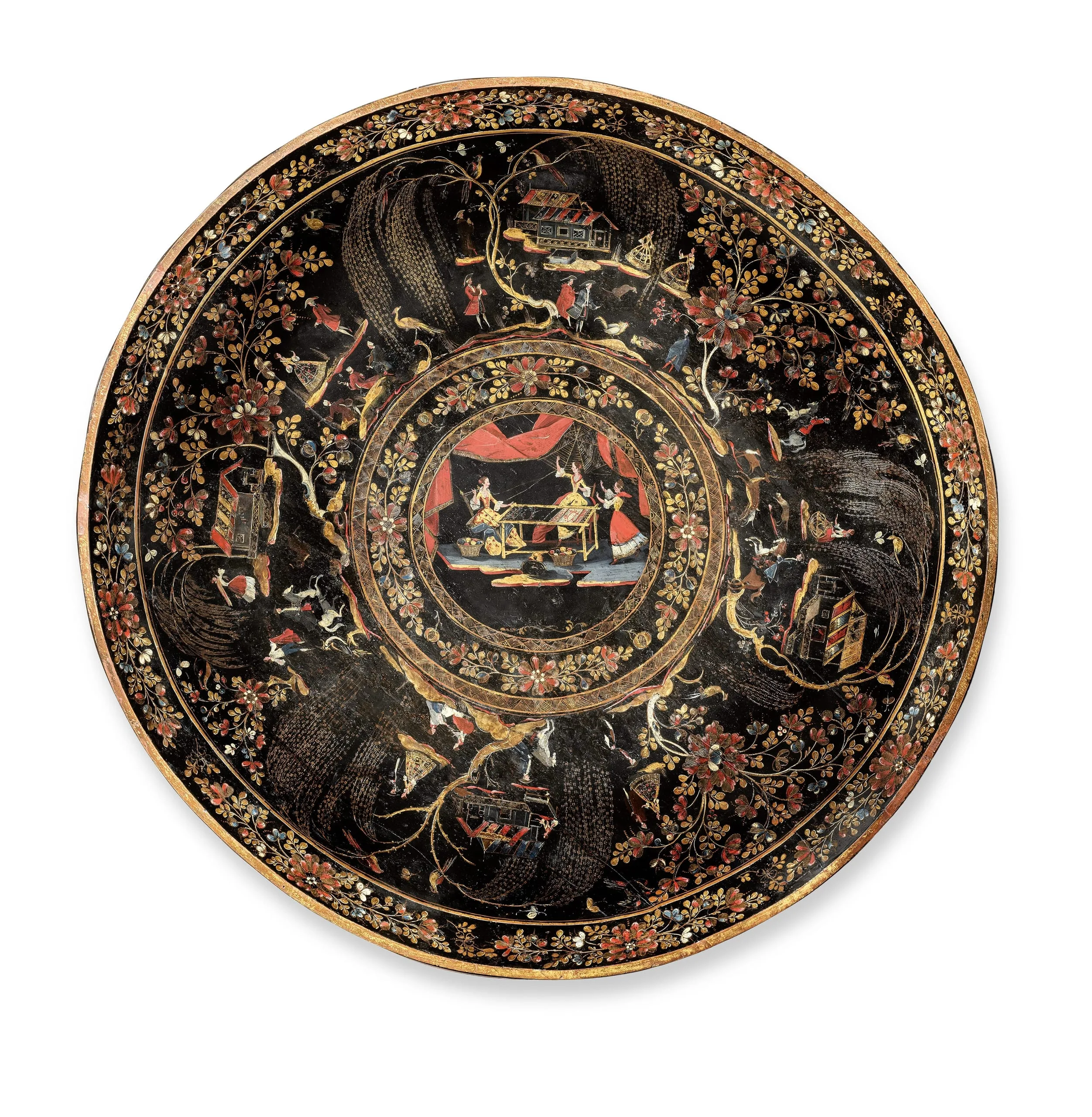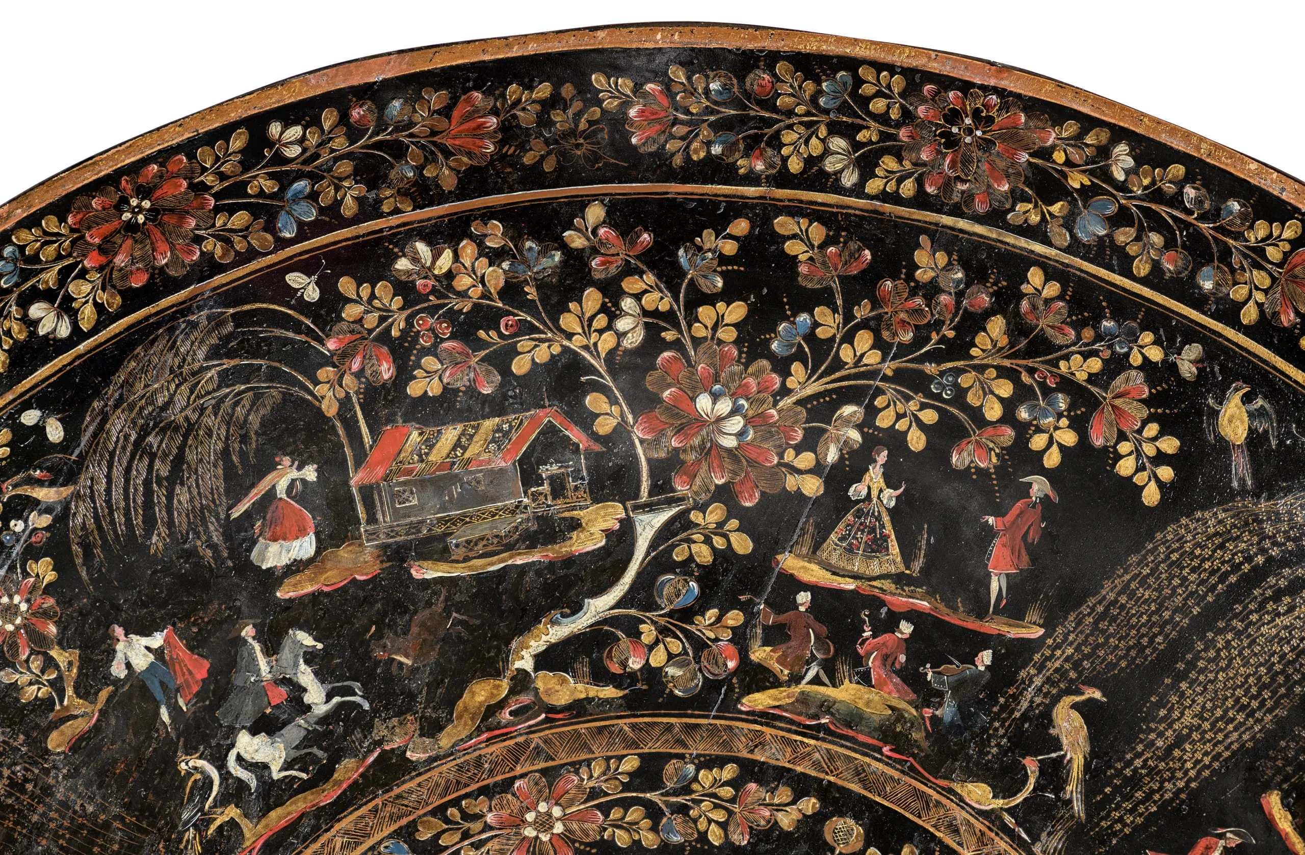 In the region of Michoacán, in west-central Mexico, inlaid lacquered objects belonged to an ancient and refined tradition. When the Spaniards arrived in the 1500s, Indigenous artists adapted the technique to new types of artifacts. The inflow of Asian objects and the European craze for lacquer (chinoiserie and japanning) inspired local artists to create their own versions, garnering fervent admiration.