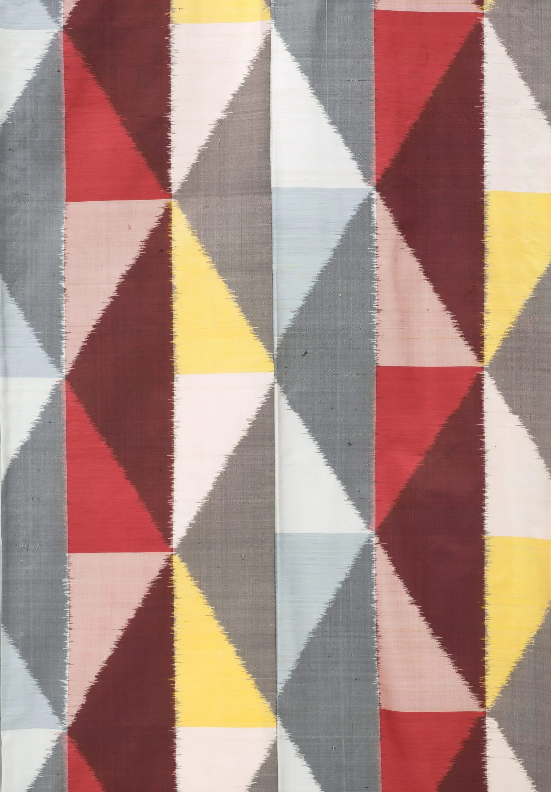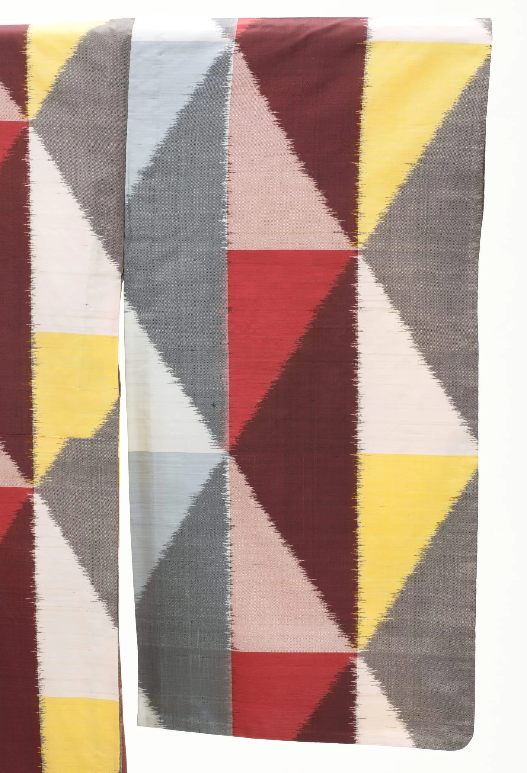 - Silk plain weave, stencil-printed weft (yokosō-gasuri meisen)