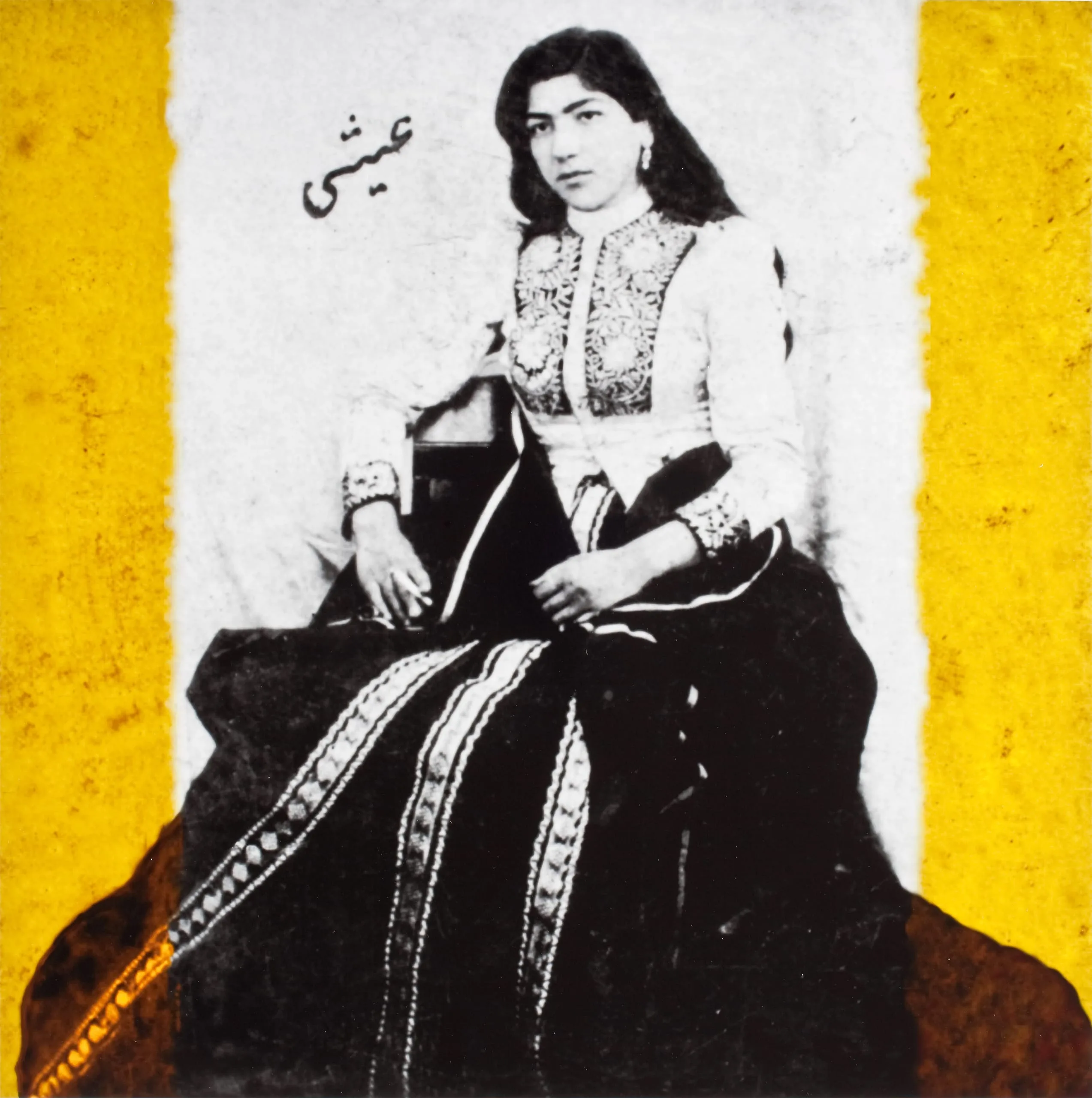 Yassaman Ameri is a photographer and multi-media artist who was born in Iran and now lives and works in Montreal, Canada. Like other contemporary Iranian artists, Ameri uses photography to comment upon issues of gender, exile, history, and religion. The series "The Inheritance" was inspired by a group of late nineteenth-century photographs, which the artist received from her mother. The photographs depict prostitutes, each of whom is identified by a black inscription. Using the computer, Ameri has framed the found photographs with colorful images of Qajar interiors or incorporated references to the nascent medium of photography in Iran. In doing so, she recontextualizes the women in fictive settings in order to afford them a new identity. Perhaps the series is self-referential. Ameri has clearly identified with a group of women whose profession alienated them from their own society. In a similar vein, Ameri was forced into exile from Iran due to her religion. This group of six prints from the larger series closely relates to the work of other Iranian artists in LACMA’s collection, such as Shadi Ghadirian, Houra Yaghoubi, and especially Bahman Jalali.