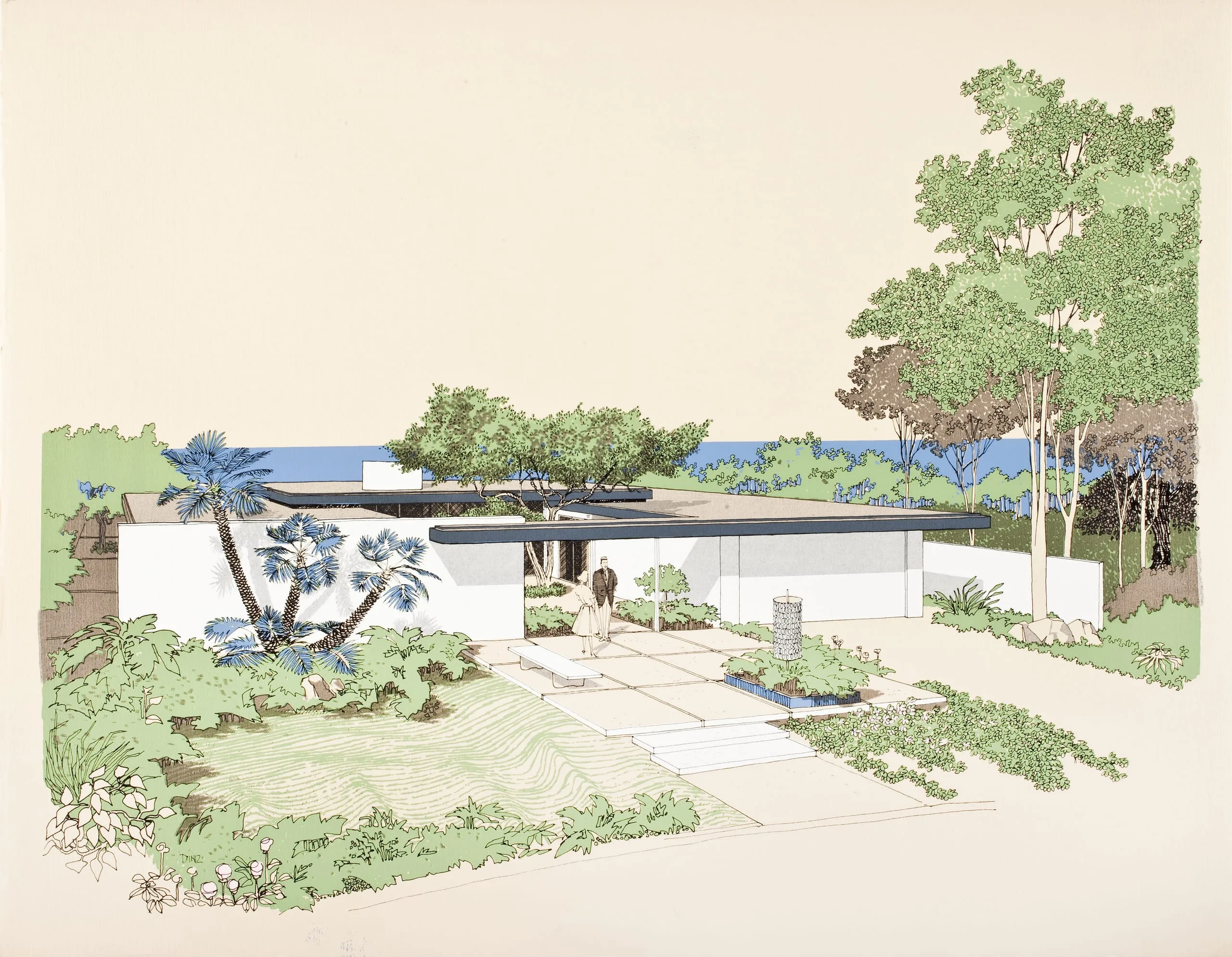 Architectural delineator Carlos Diniz translated architects’ often very technical renderings of buildings to a format easily understood by clients, developers, and the general public. Diniz created alluring drawings of Monarch Bay Homes that were shown to the developer and later used in sales brochures.