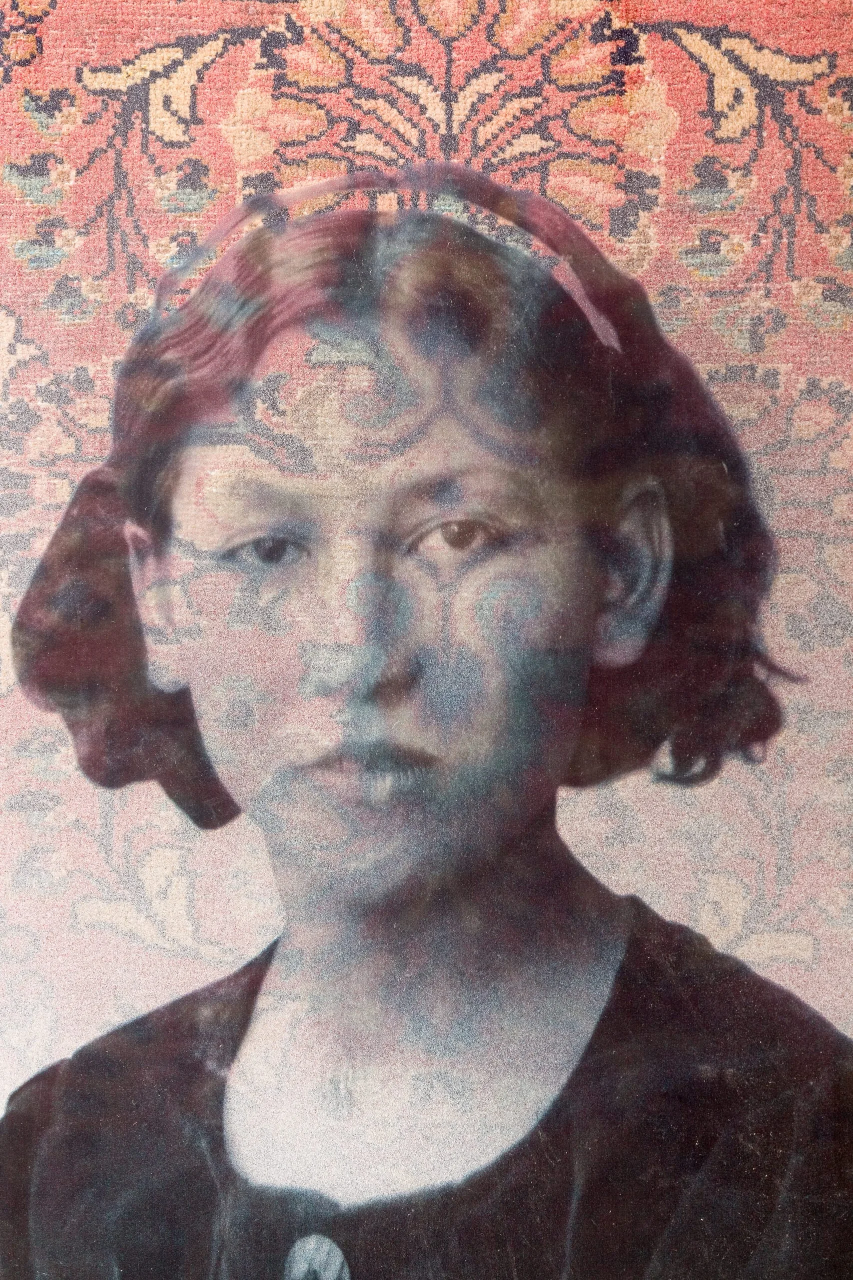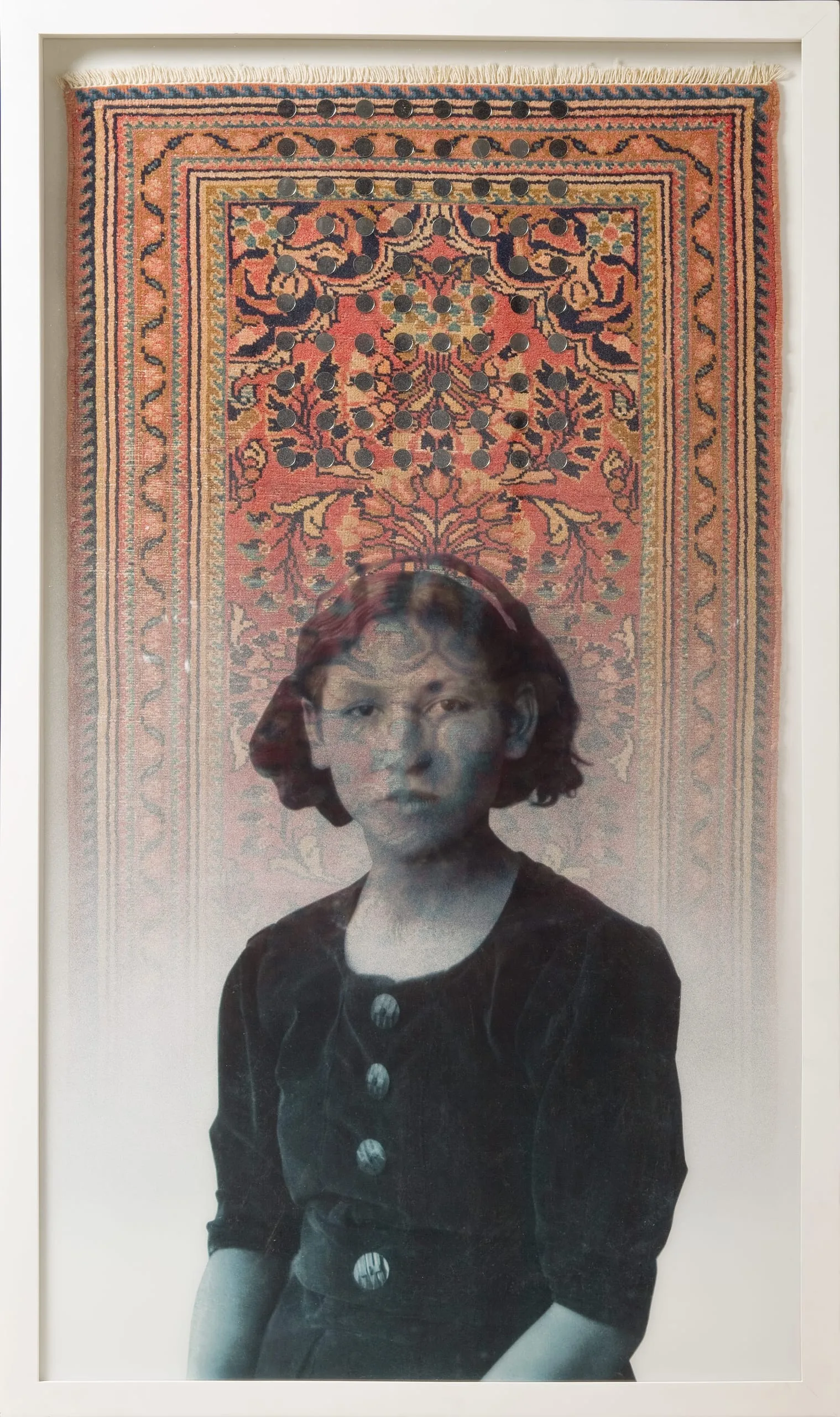 carpets, which help to fix these young women in time and place, as well as small shards of mirror that