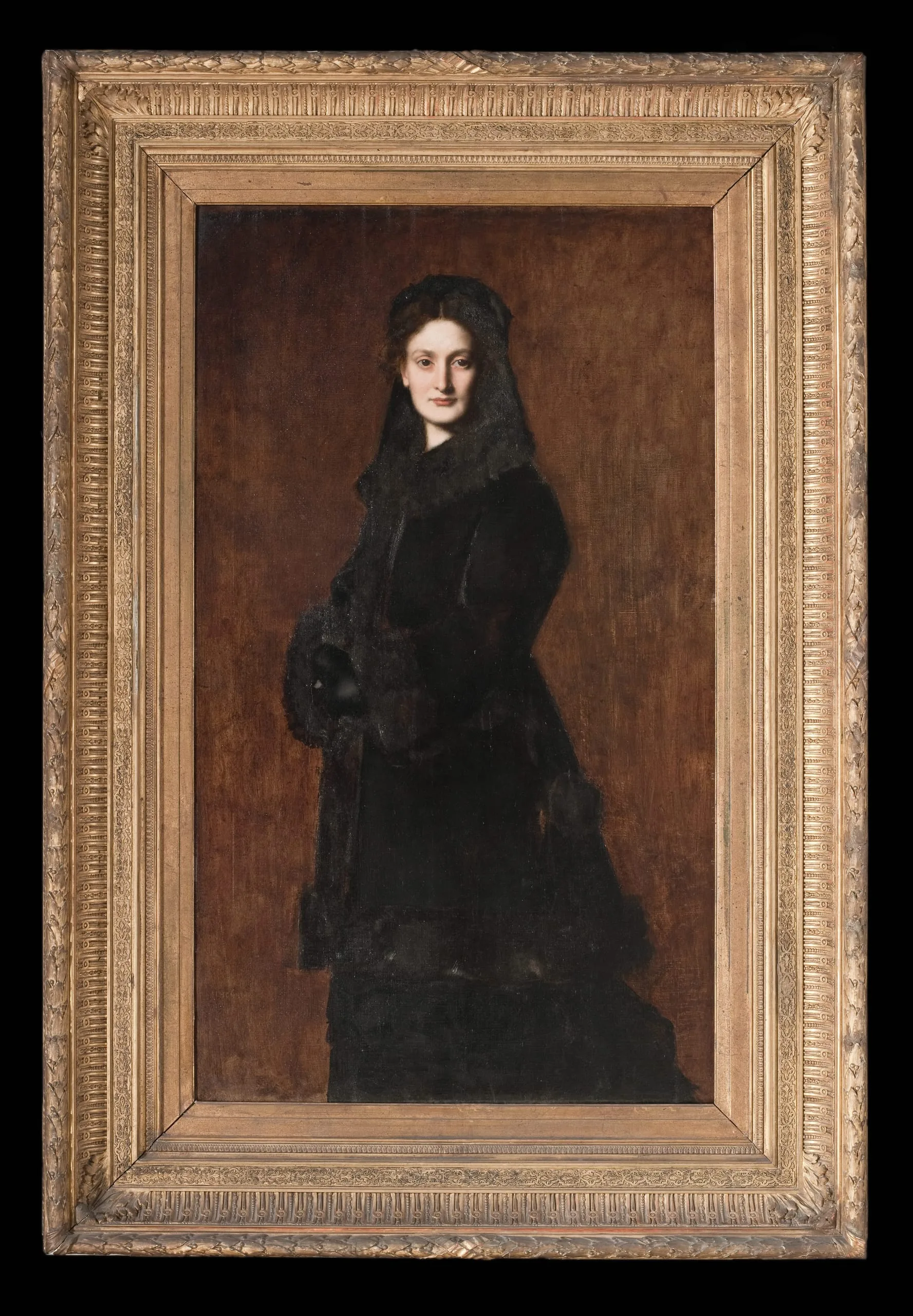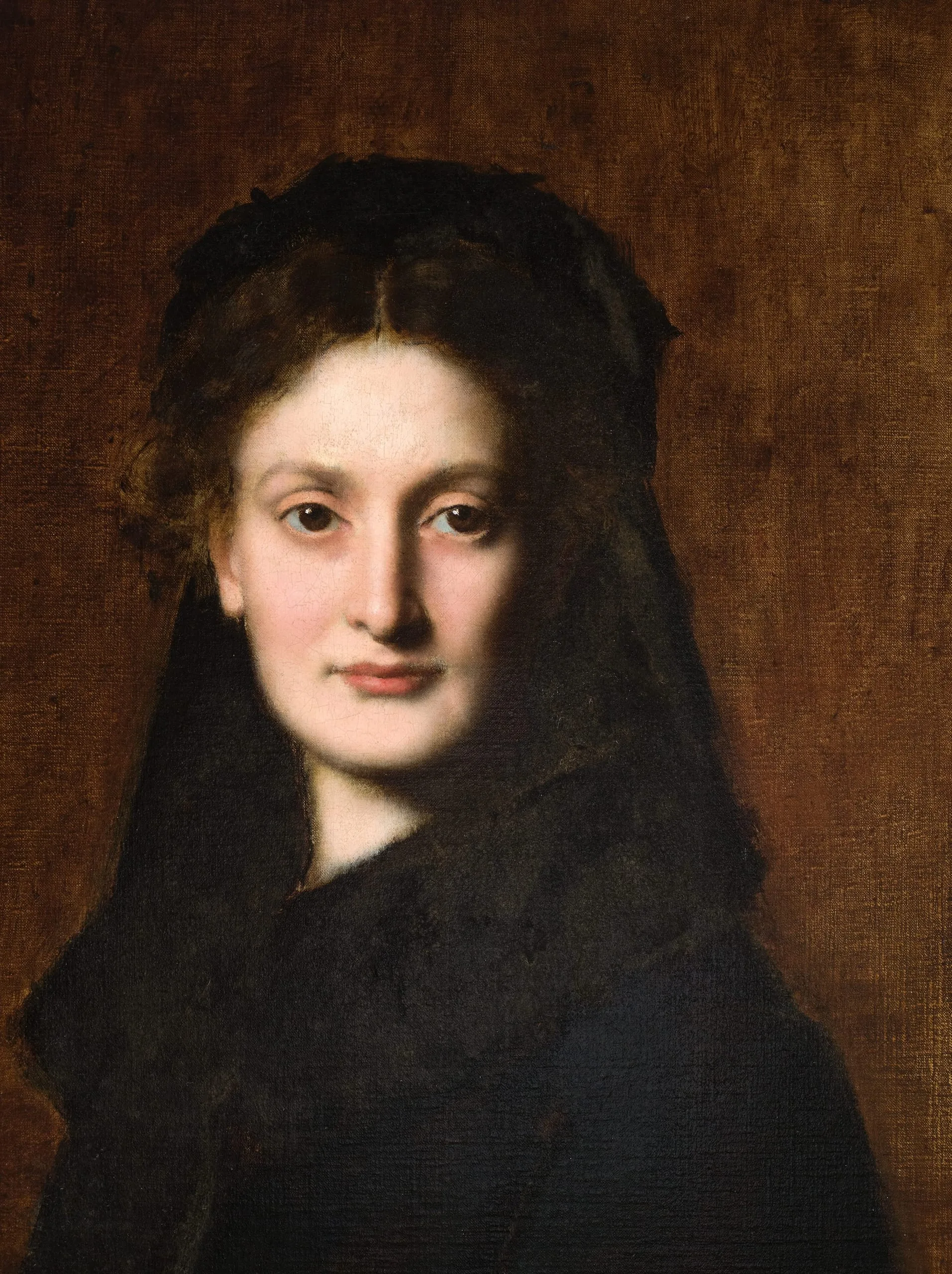 As in this portrait, Henner typically set the sitter against a plain background so as to enhance the subject's fine features. In this portrait, Madame Duchesne-Fournet's black outfit is thinly painted in a manner prefiguring Whistler,but the austere atmosphere of the composition also recalls the full-size portraits of van Dyck and Goya. Indeed, Henner, who had been academically trained, often introduced technical innovations in his paintings that make it impossible to define him with precision as a traditional or modernist artist.