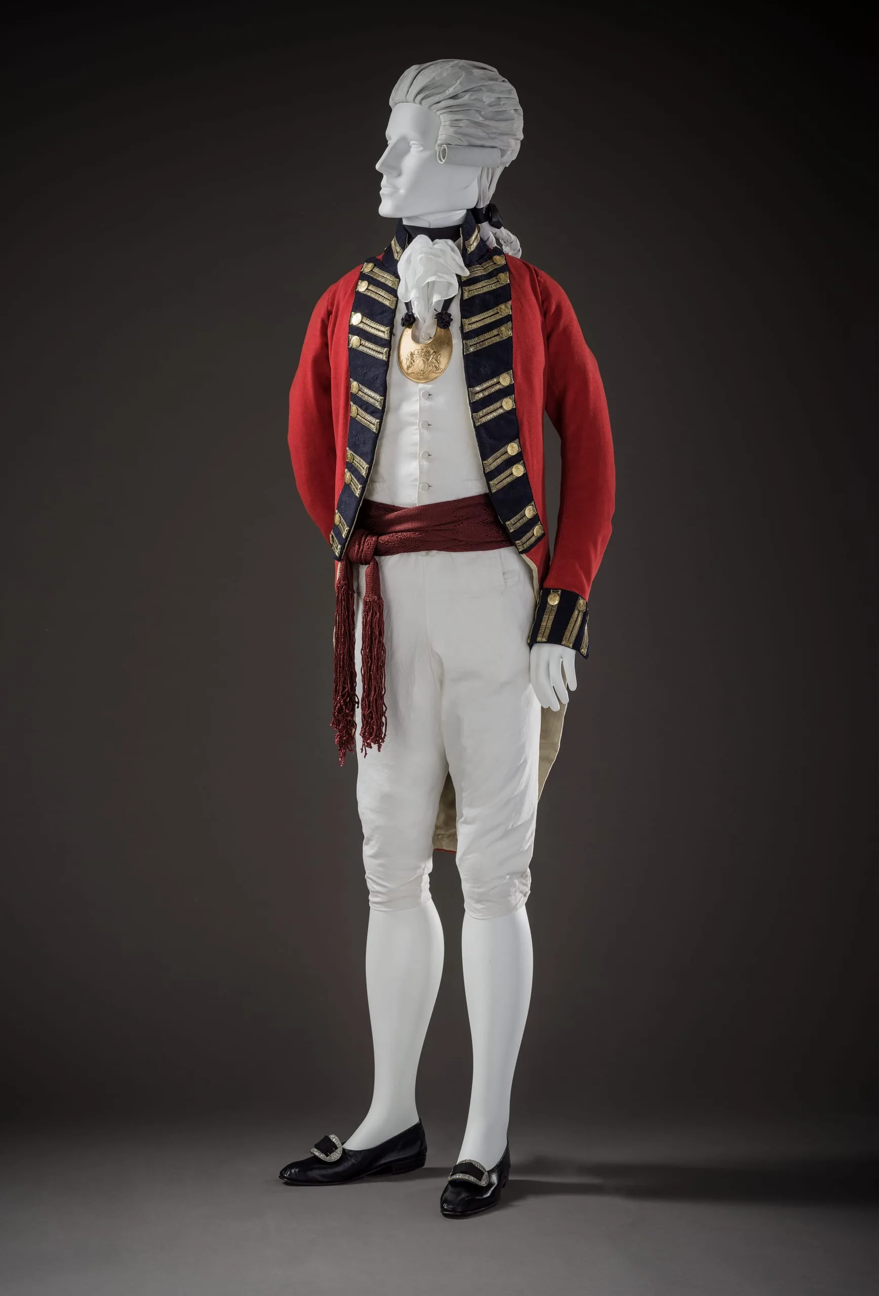 - Wool plain weave, full finish, with metallic-thread passementerie and metallic buttons