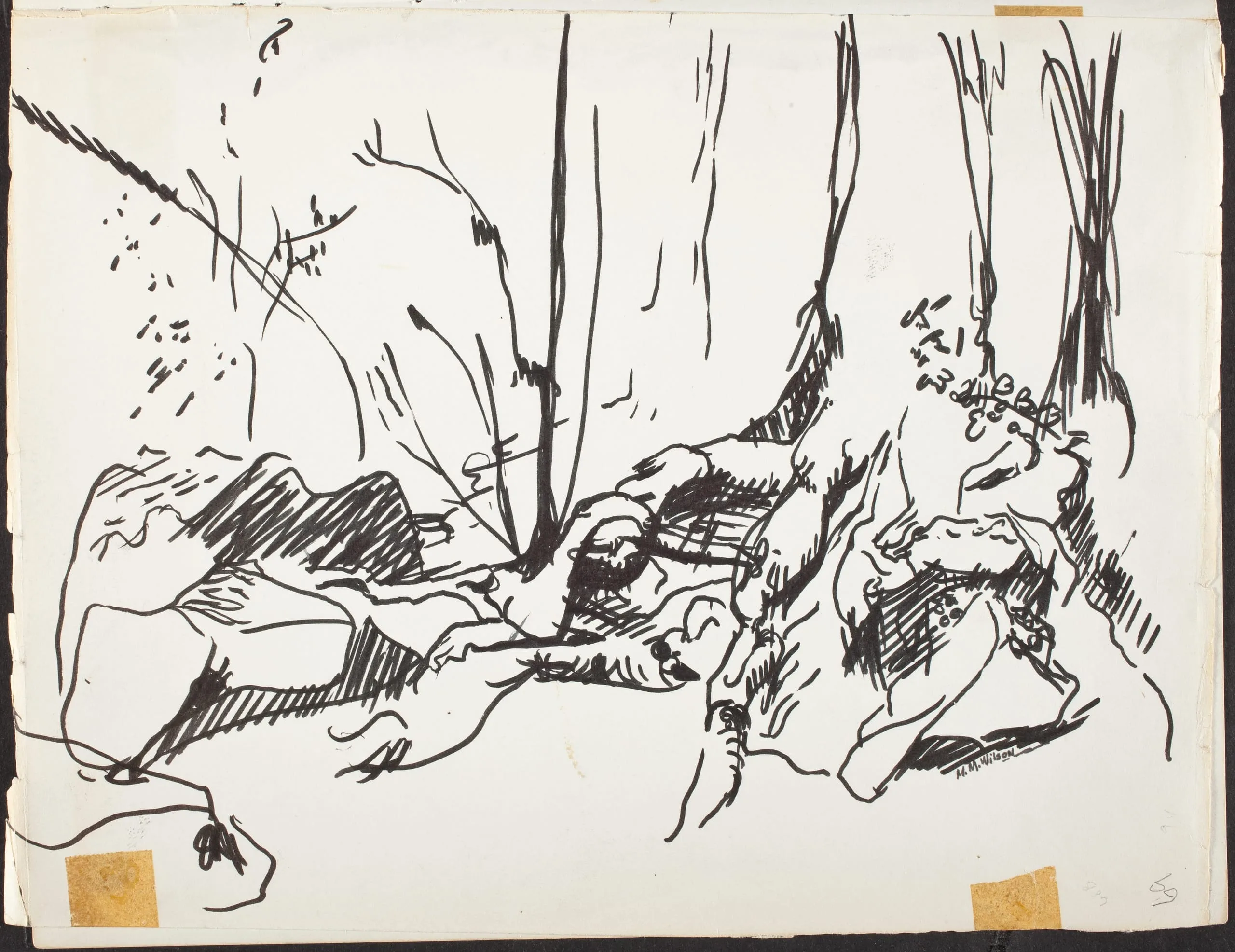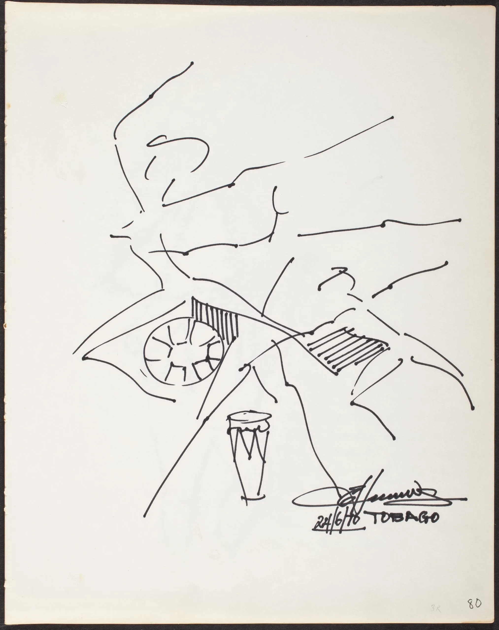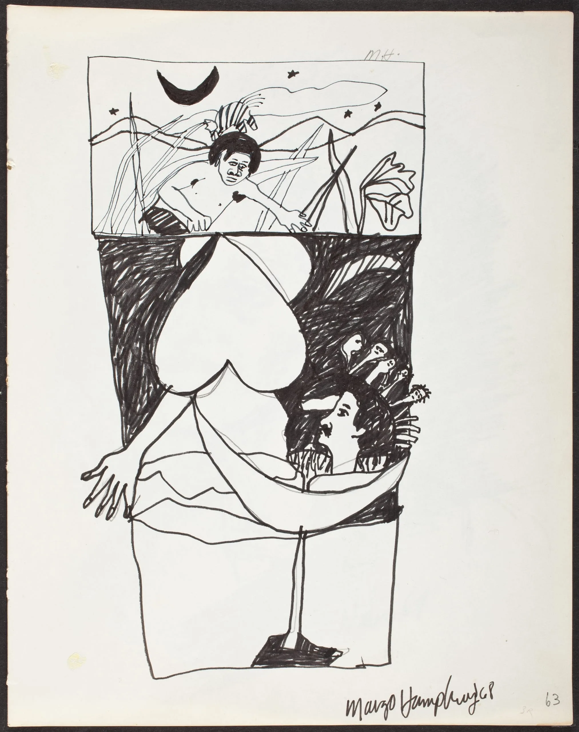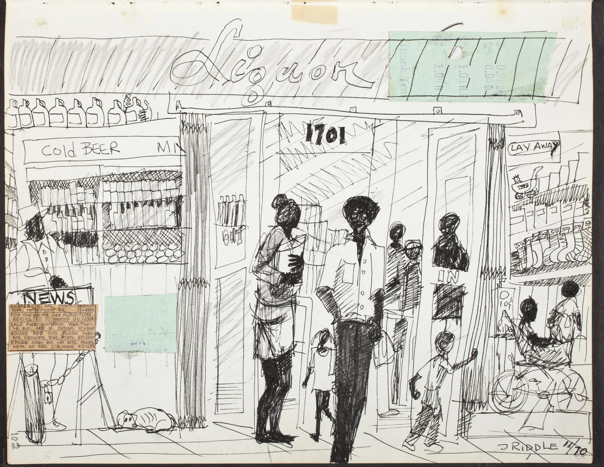 - Various media including: charcoal, ink, ink wash, marker, pen, graphite, watercolor, colored ink, colored pencil and collage on paper