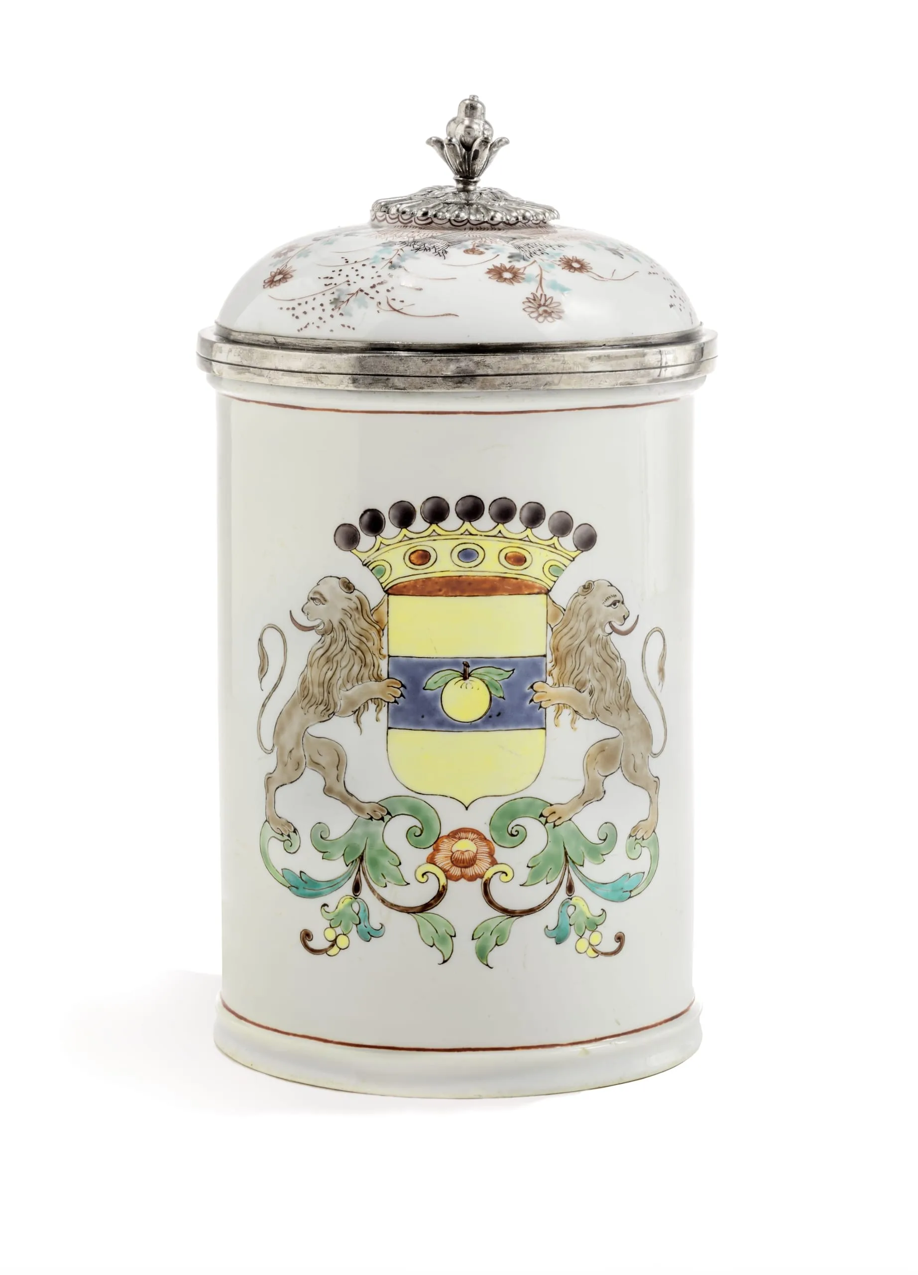 - Soft-paste porcelain with glaze, enamel, and silver mounts