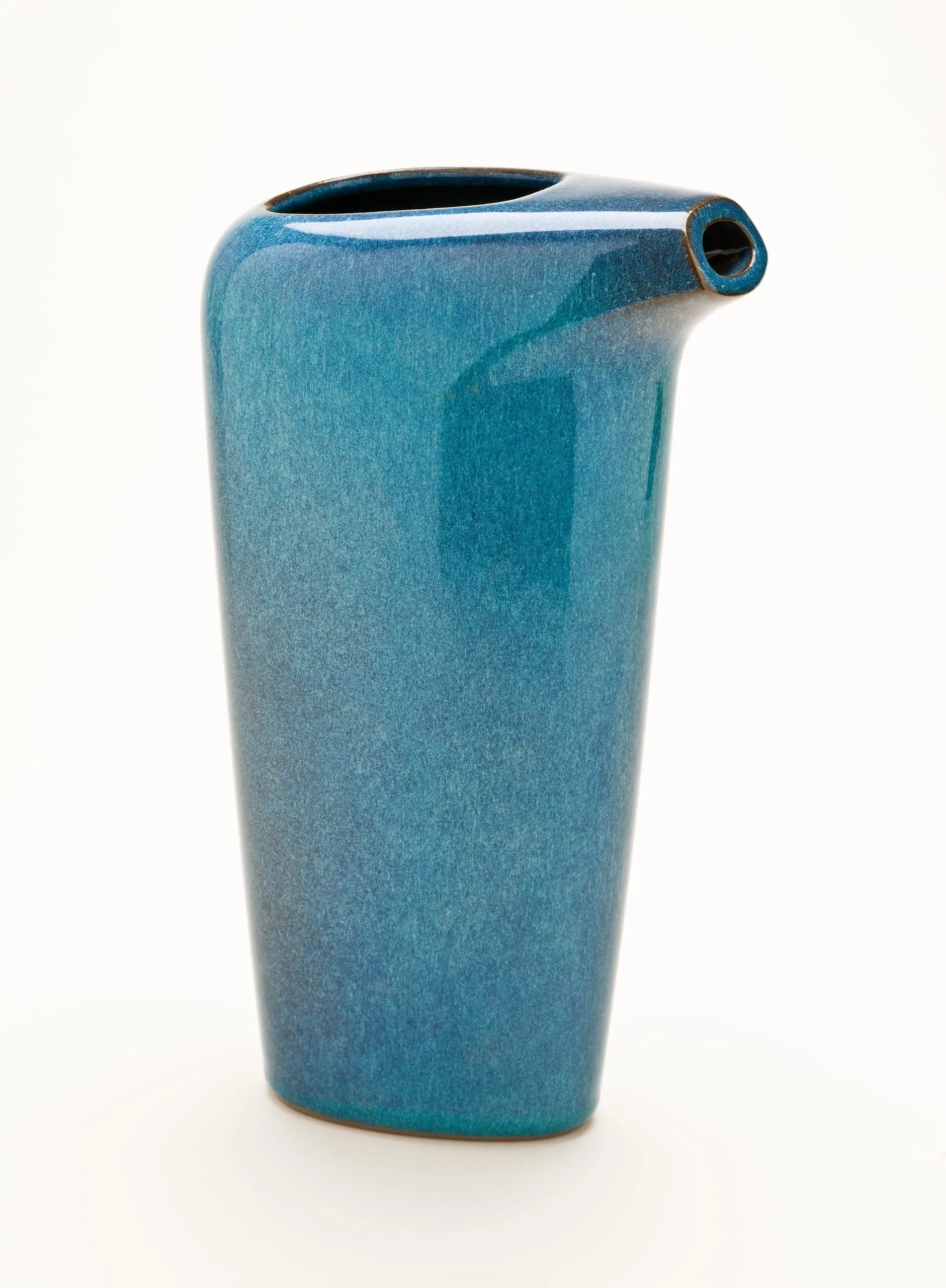 While close friends Harrison McIntosh and Rupert Deese shared studio space and glazes for more than fifty years, their distinct styles reflect different approaches to production. McIntosh threw unique vessels, ornamenting them with precise, hand-drawn patterns such as the circles on this jar. In contrast, Deese developed a line of functional forms that were slip cast in molds, including his popular cocktail pitcher.