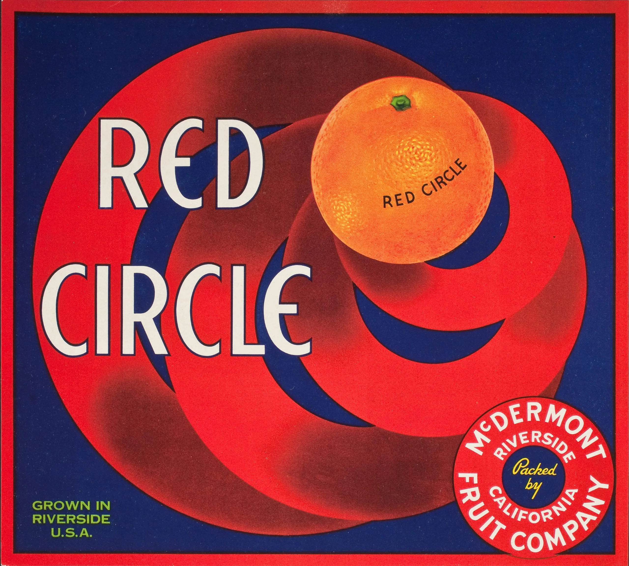 - Red Circle orange-crate label for McDermont Fruit Company, Riverside