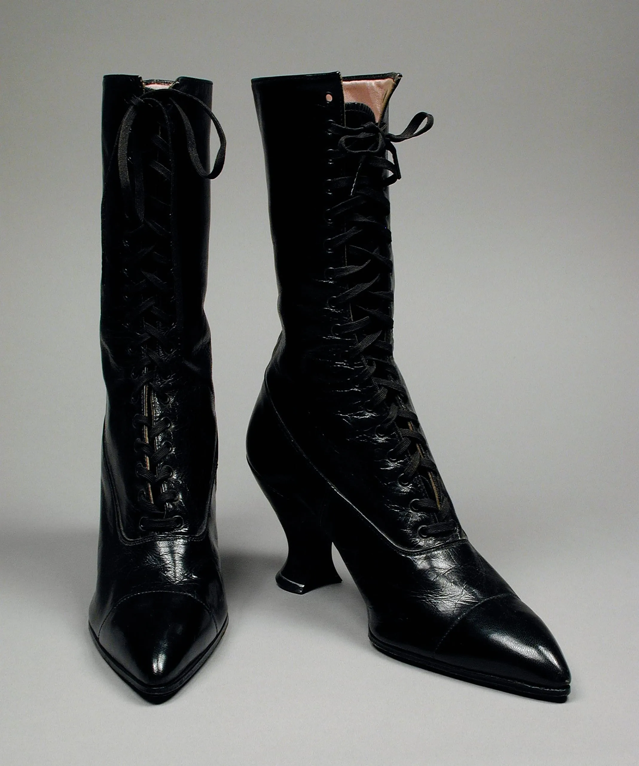 - Leather with silk braid and metal laces