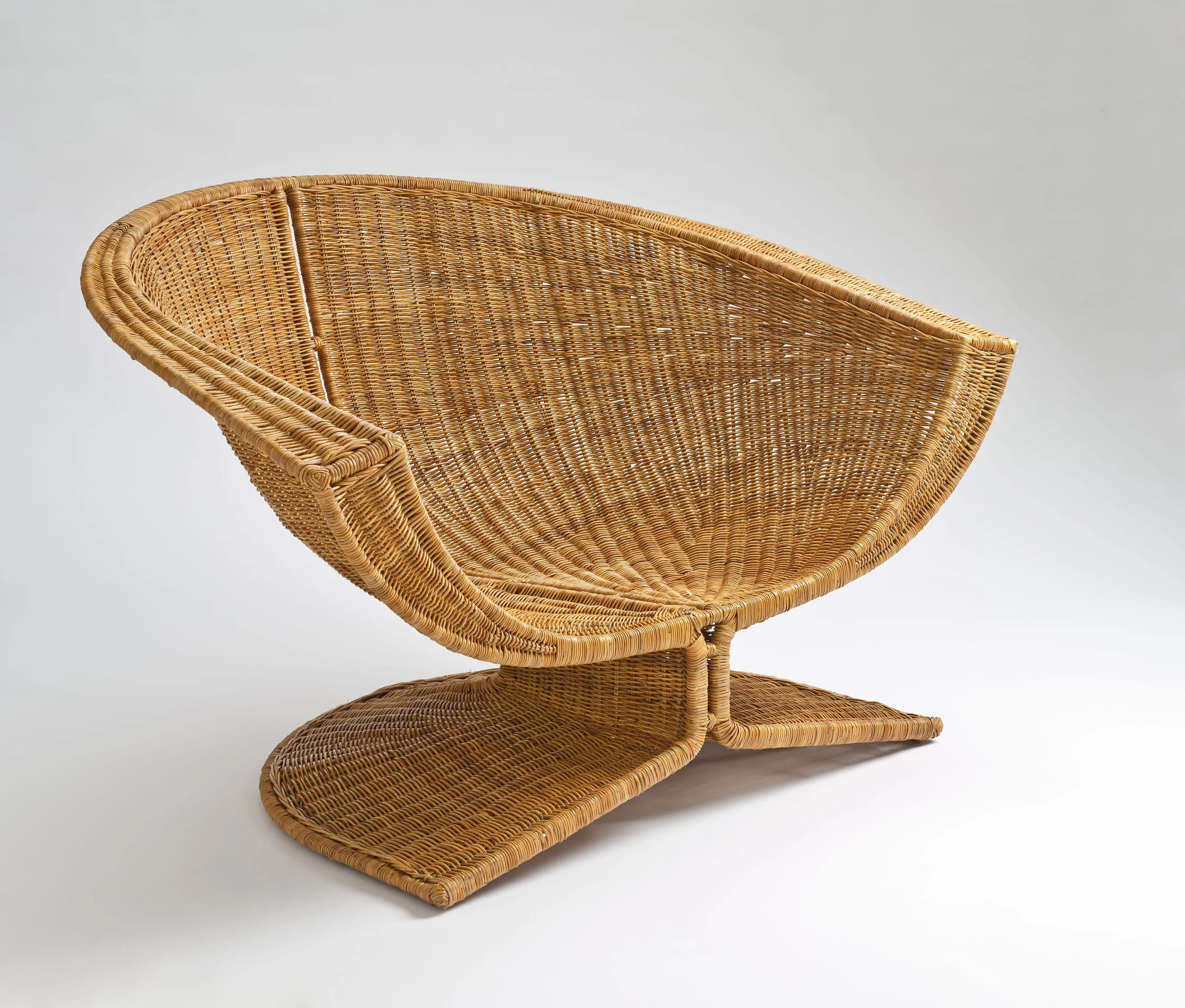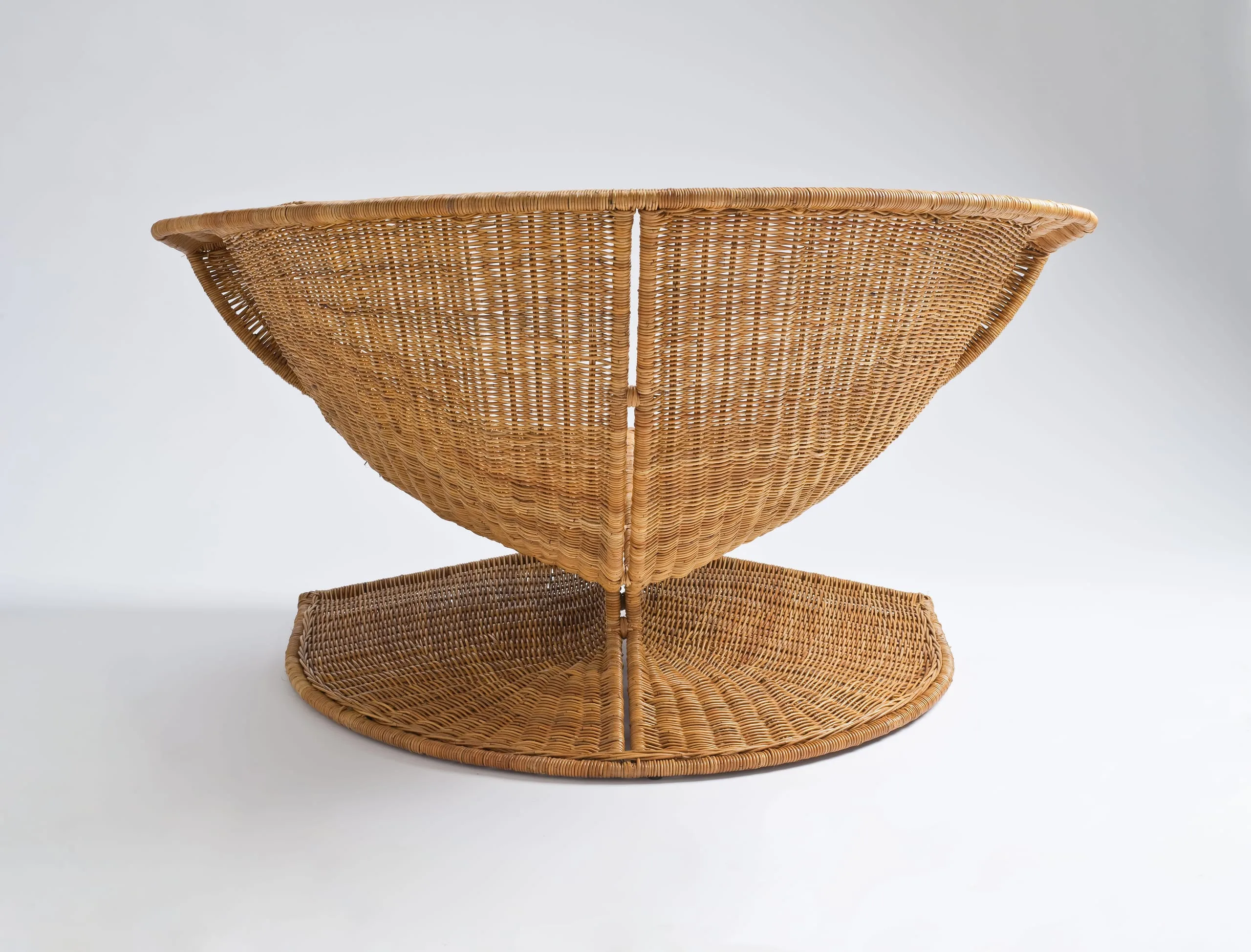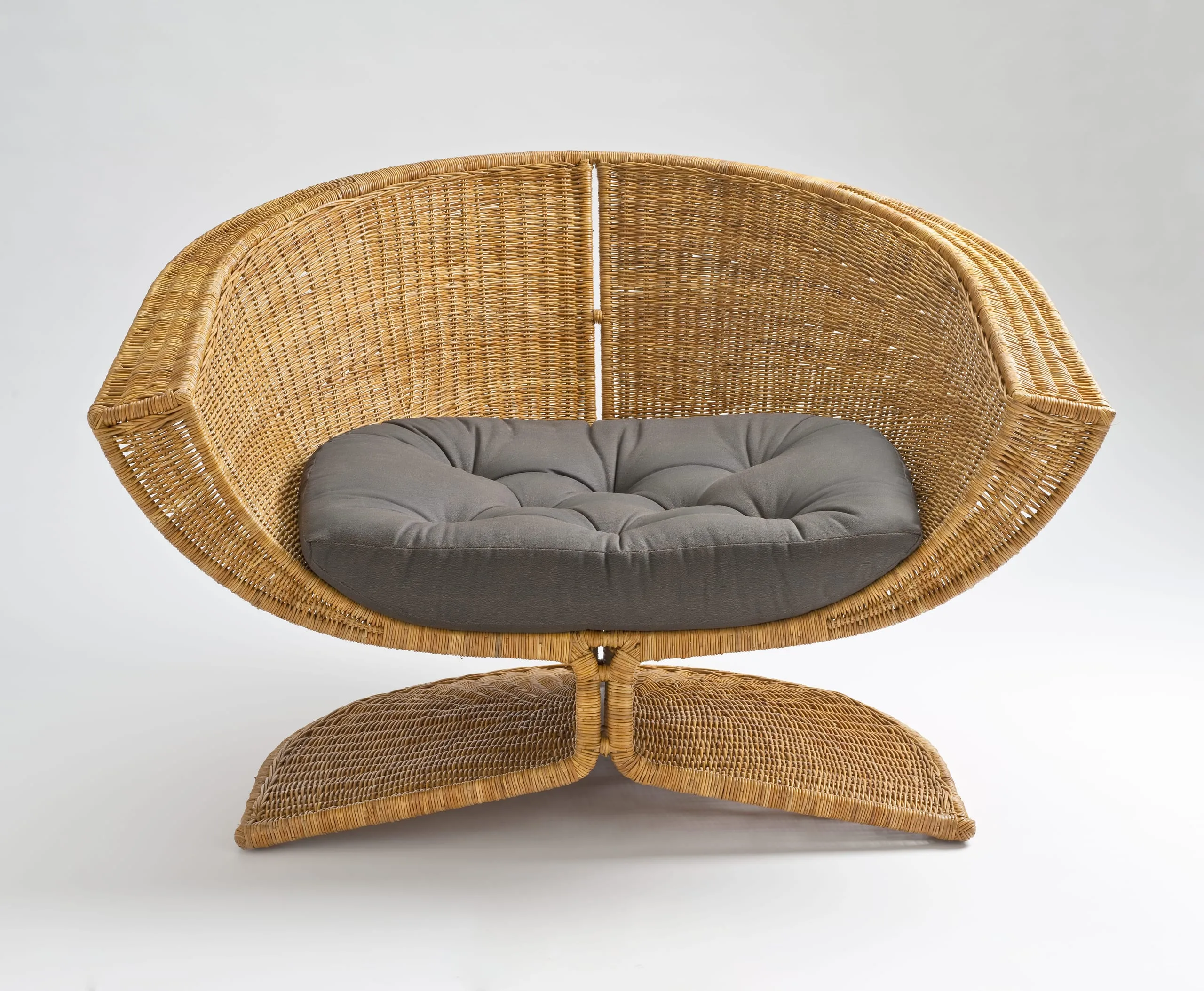 Following in the footsteps of his father, Danny Ho Fong, Miller Fong used wrought-iron frames to shape rattan into light, modern furniture. He was still in his twenties when he designed the Lotus chair, which was displayed in California Design 10. The pleasing curves of the chair, which the Los Angeles Times called “a seductive well of comfort,” earned it a prominent place in the publicity for the exhibition.