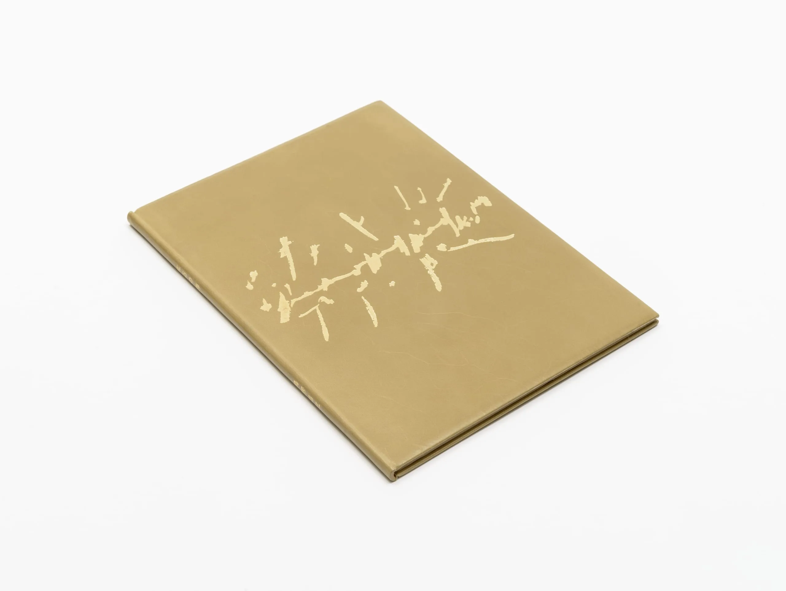 - Hardcover book with slipcase; taupe leather with gold tooling; slipcase paper on board with taupe leather edges