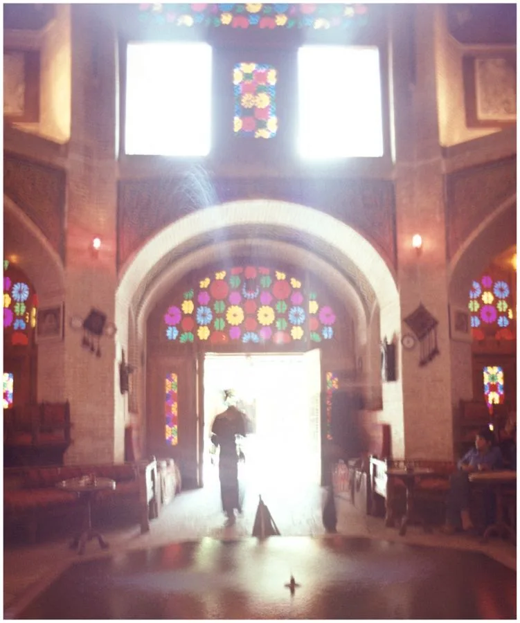 The pair traveled to the main tourist sites: ancient Persepolis, where the Tent City erected in 1971 for the 2,500 year celebration of the Persian Empire was still standing; Shiraz, home of poetry and wine; and Isfahan, renowned for its beautiful tile-clad buildings. Grouped in narrative fashion, the images depict people and places with the actress as tourist, but one so iconic that she is never anonymous even wrapped in a chador. In the Isfahan bazaar, Taylor was attracted to and purchased a traditional tribal outfit. Dressed in this colorful costume and in full make-up, the film star posed as an Oriental odalisque, an especially suitable persona for one who was herself a male fantasy. Though Zahedi took many photographs of Taylor in the years following their Iran trip, none are as personal, candid, or creative as these unique images.