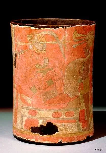- Stuccoed Cylinder Vessel with Palace Scene