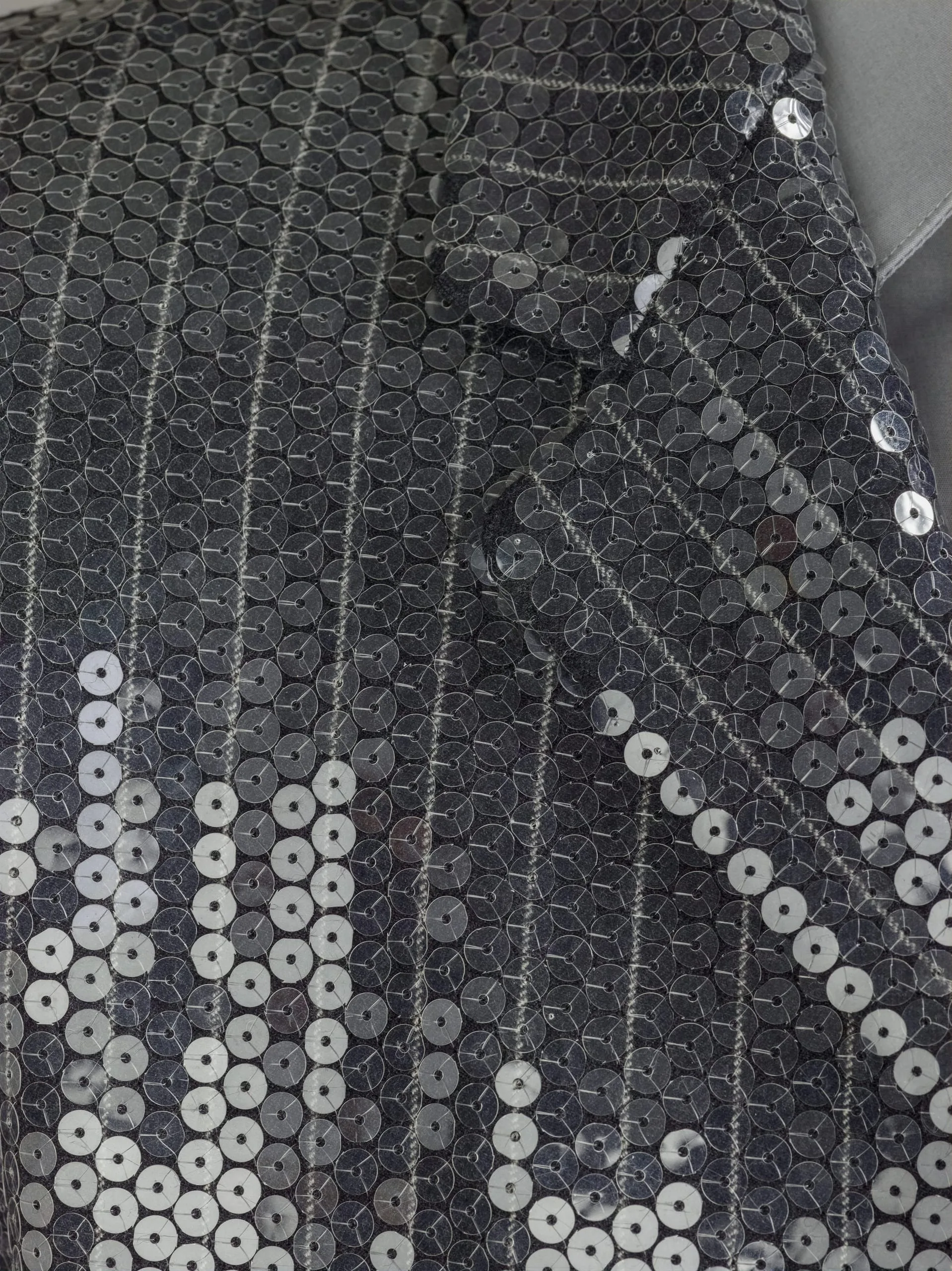 - Wool/polyester twill with plastic sequins