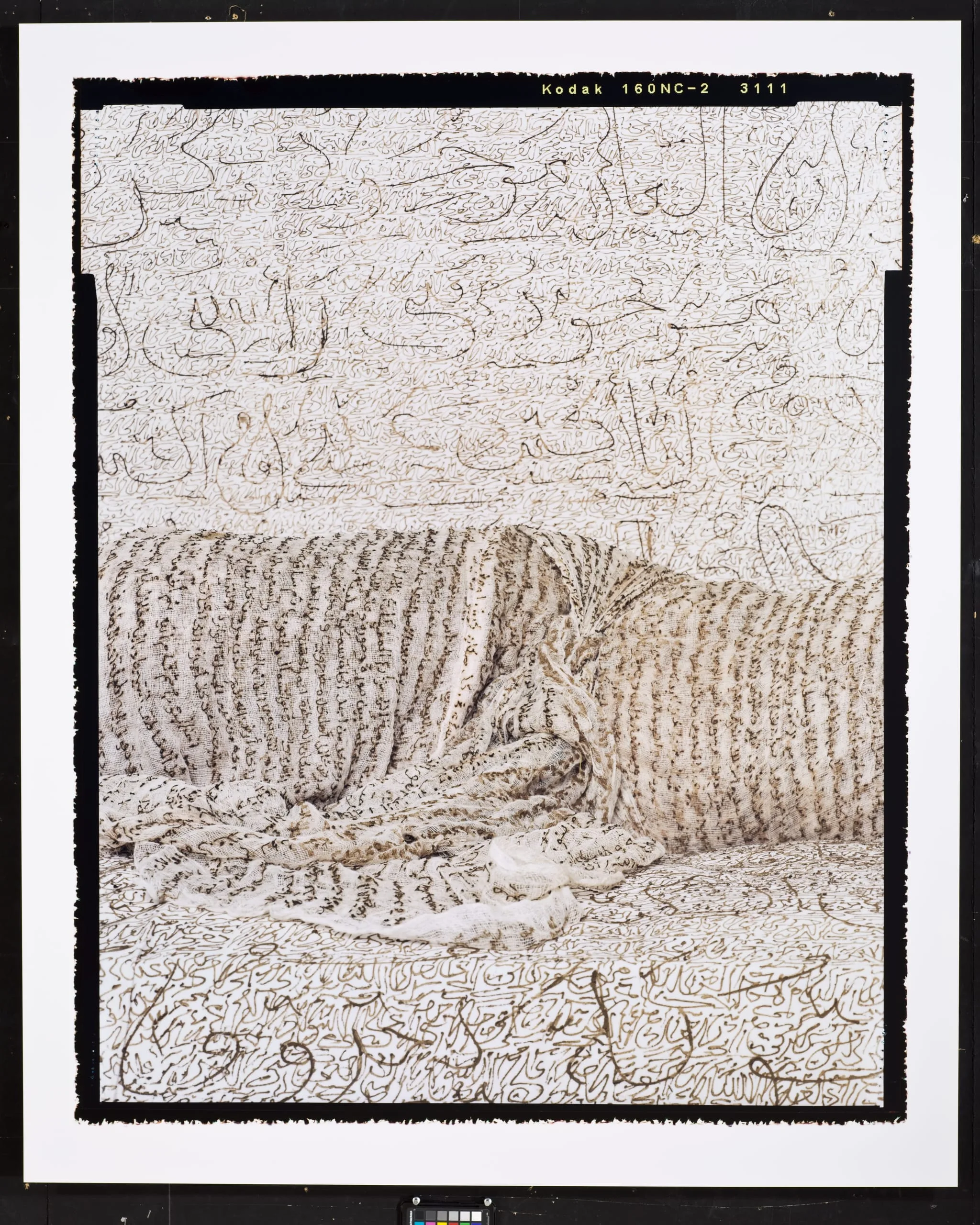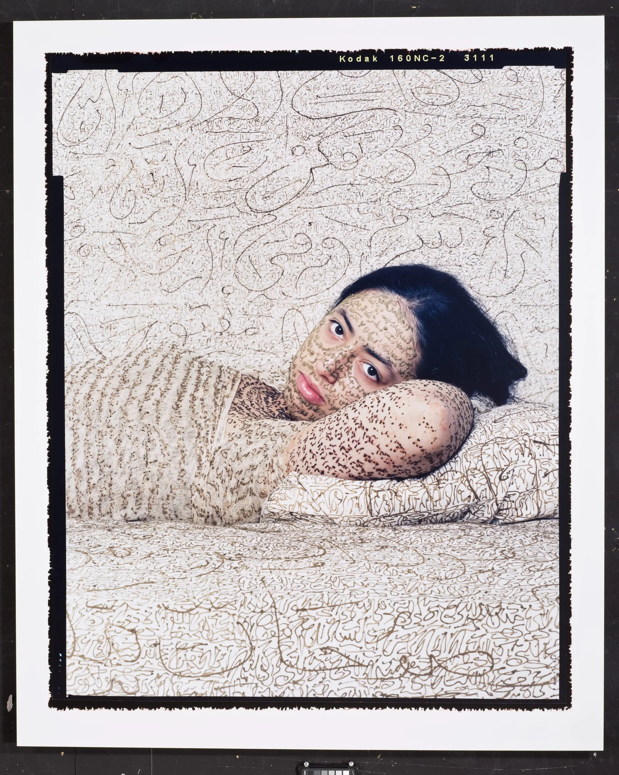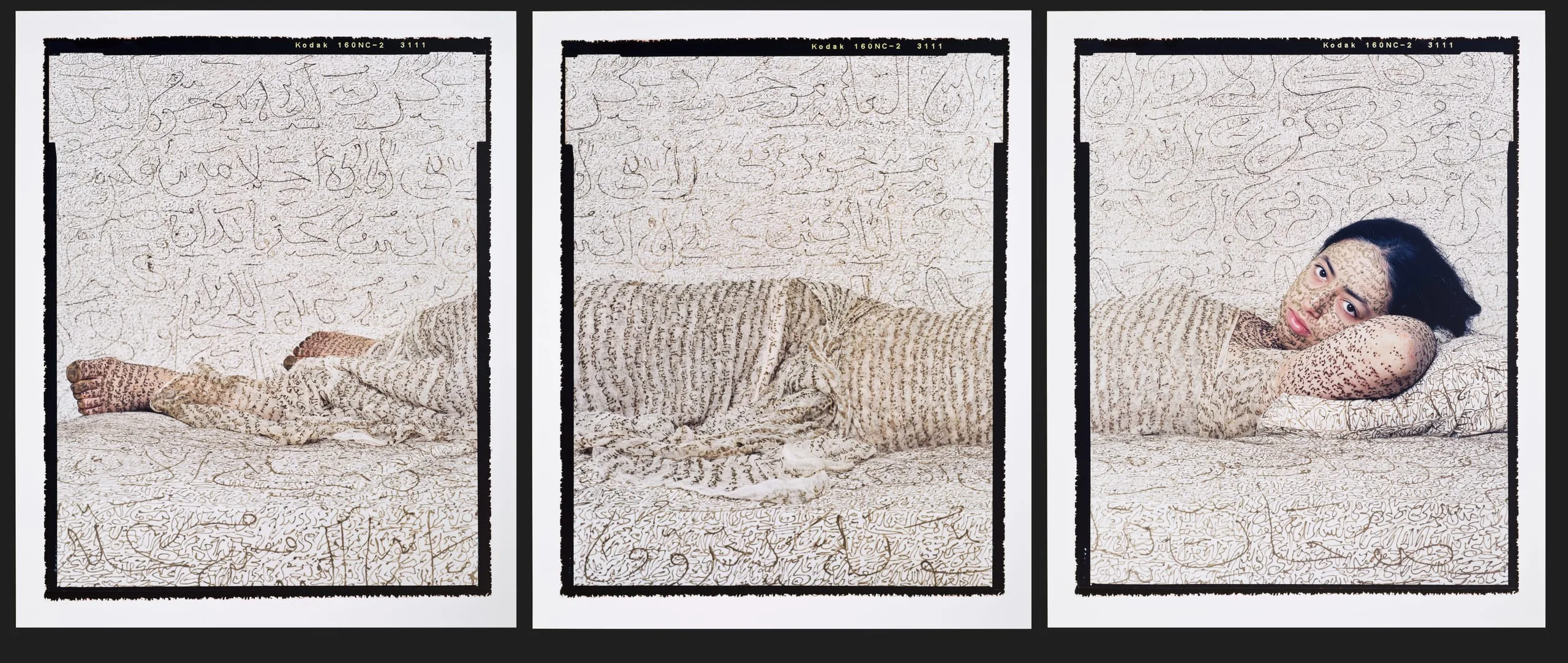 Lalla Essaydi’s art frequently depicts the reclining female form to address issues of identity from her own unique perspective as an