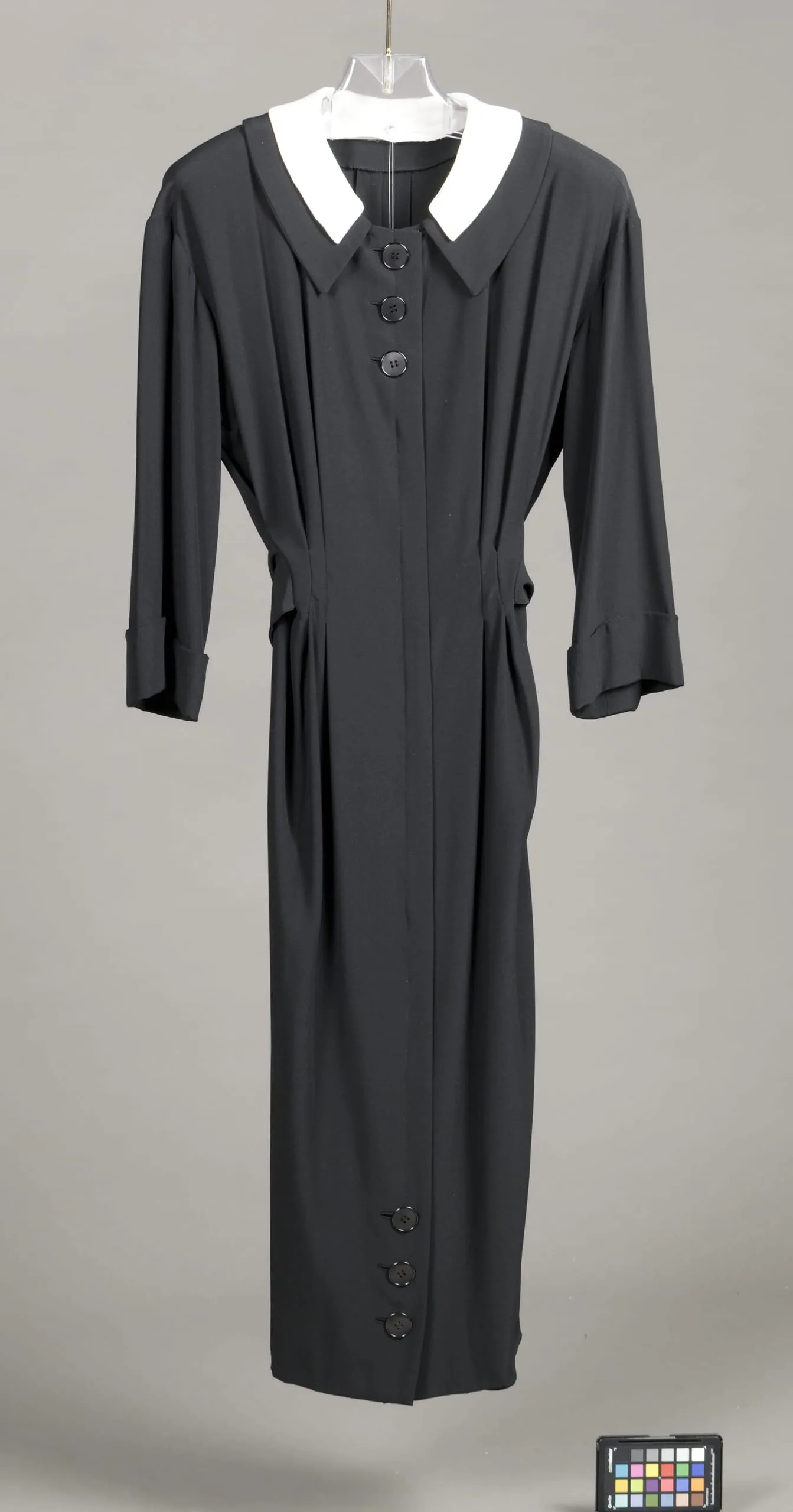 - Jacket: Silk satin-backed crepe, plastic buttons. Collar: Linen plain weave.