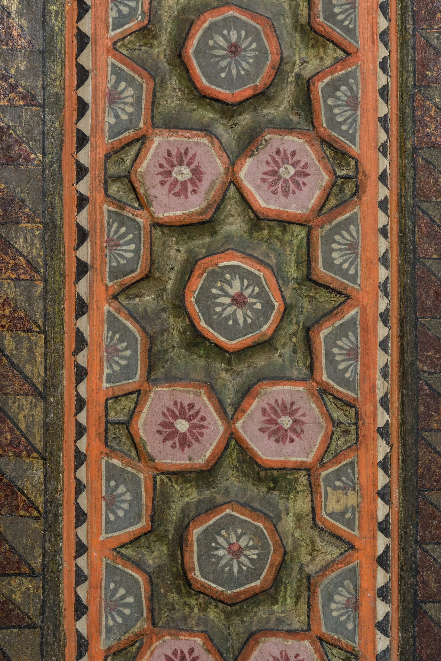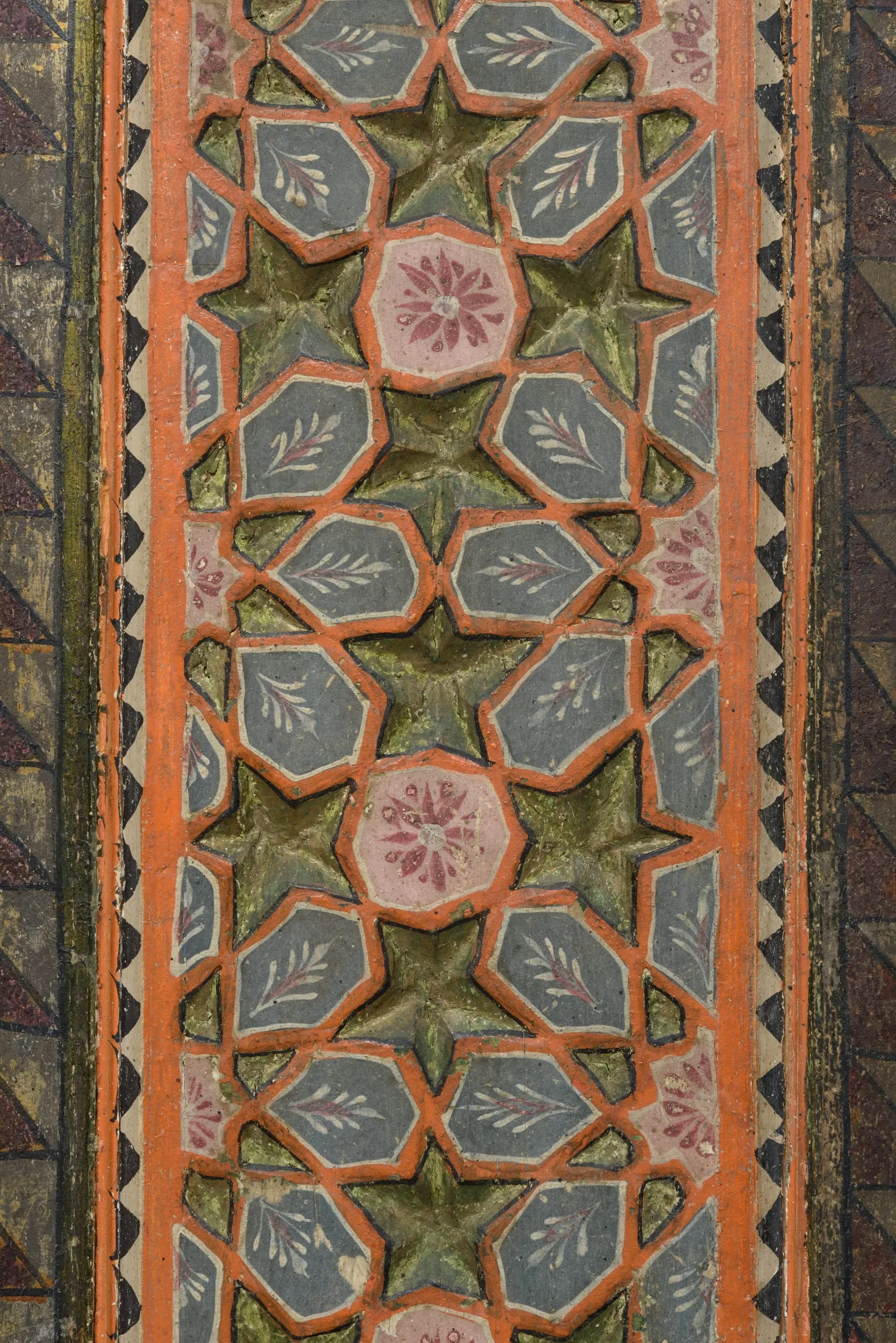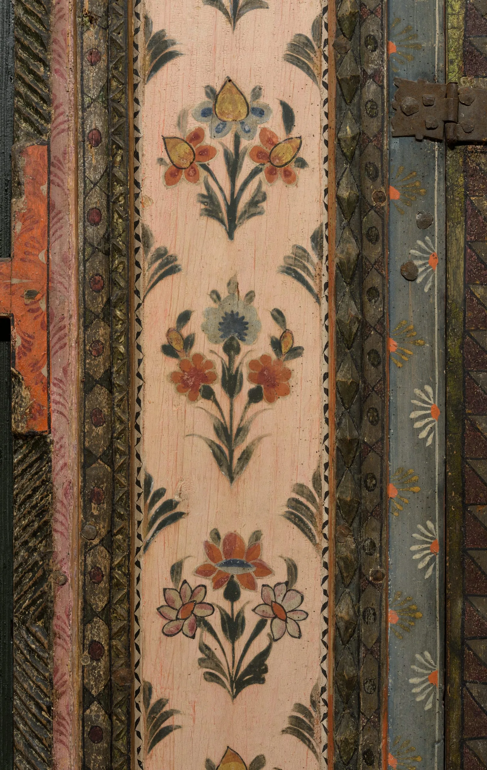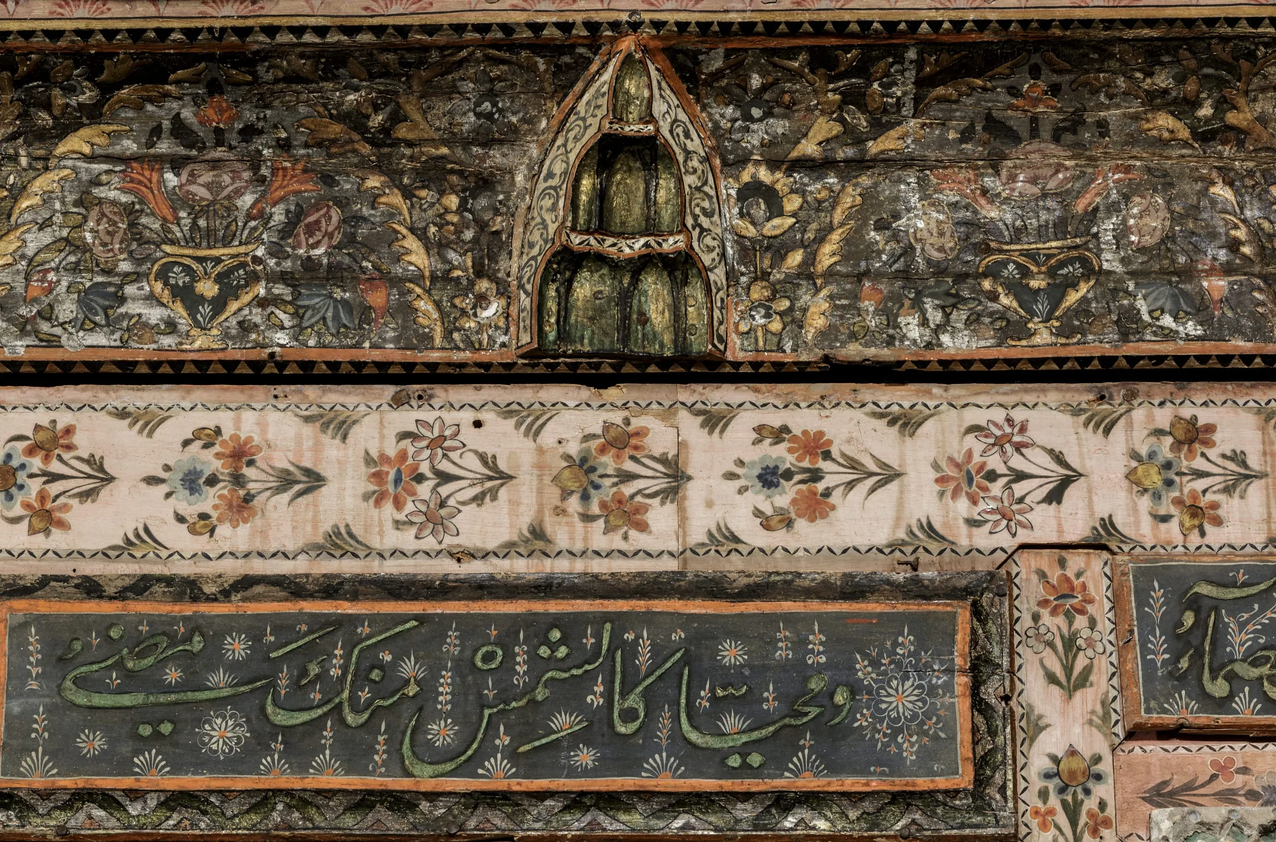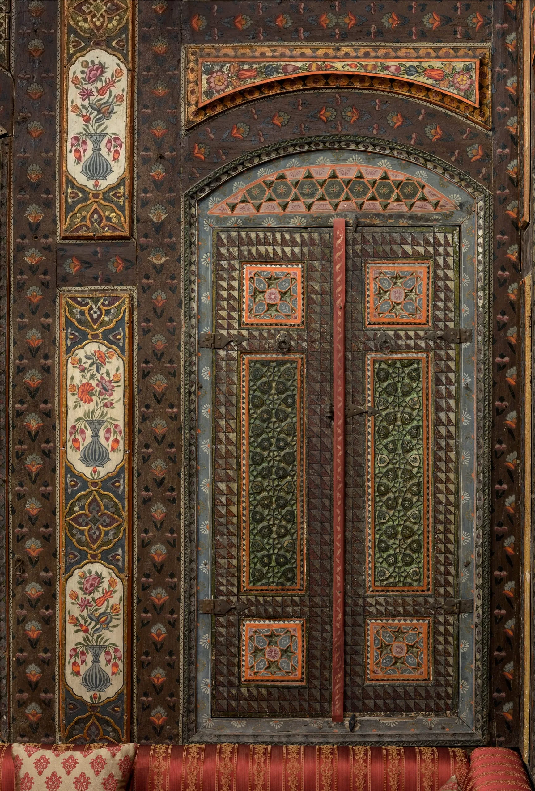 In 2014 the Los Angeles County Museum of Art acquired this Damascus room dated AD 1766–67 / AH 1180, which had been dismantled intact from a courtyard home in the al-Bahsa quarter that was torn down in 1978 to make way for a road. The room has colorful stone floors, painted and carved wood walls, elaborate cupboard doors and storage niches, and an intricately inlaid stone wall fountain with a carved and glazed ceramic hood. The room was largely in its original state, with one of the best-preserved painted surfaces of any similar room of the period but covered with layers of dirt and grime. Brilliant pinks, oranges, blues, and greens have now been revealed in the conserved and reintegrated room.