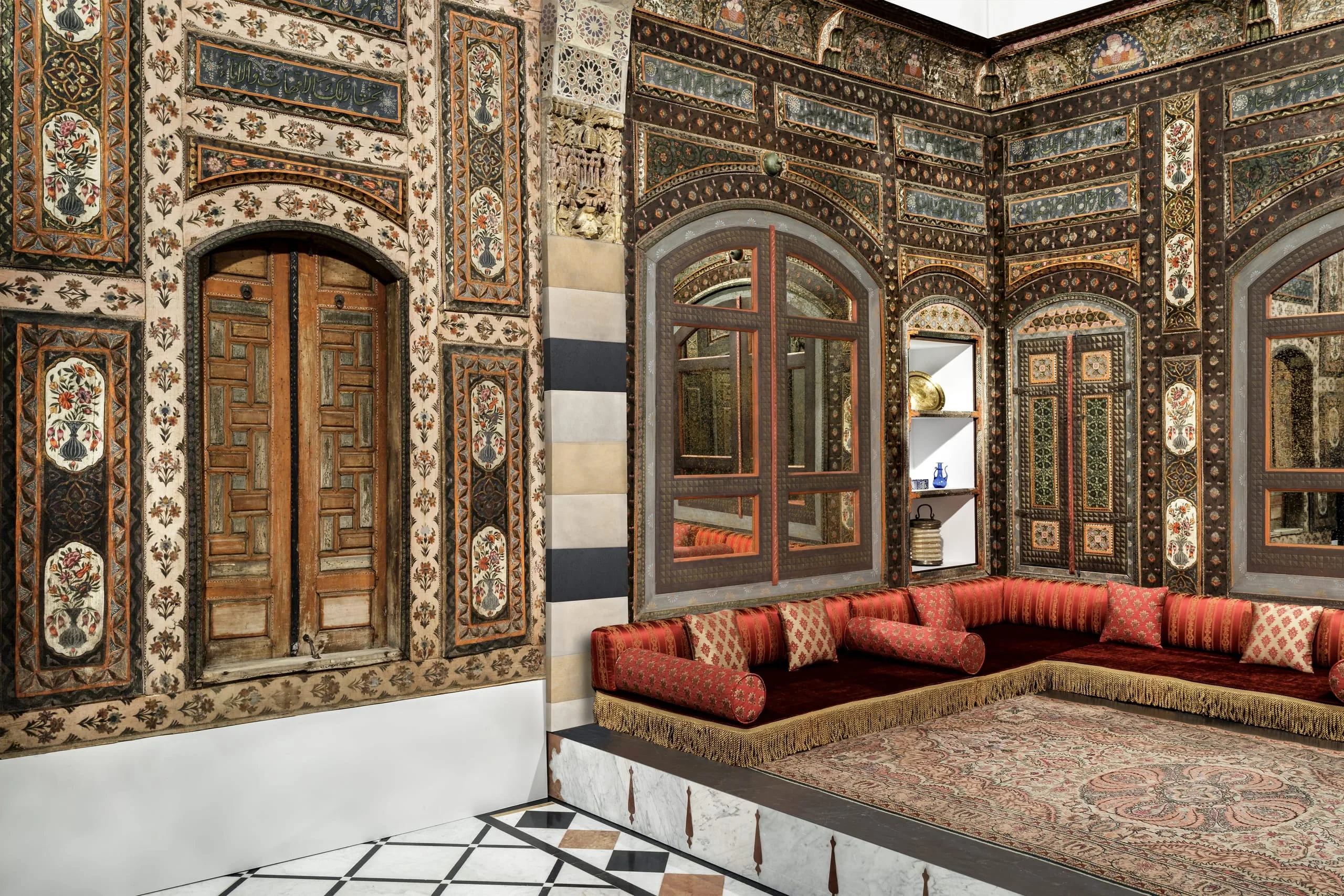 Unlike fashionable residences in early modern Europe, the homes of the well-to-do in Ottoman-era Damascus had plain exteriors, within which were concealed elaborately decorated reception rooms that faced onto courtyards. The ornate stone courtyards provided a cooler living space during the hottest times of the year, while the lavishly bedecked reception rooms were used primarily in the winter months. With the modernization and growth of Damascus, many such historic homes were demolished, but occasionally their sumptuous interiors were spared. Several have found their way into museums not only in Damascus but also in Europe and the United States.