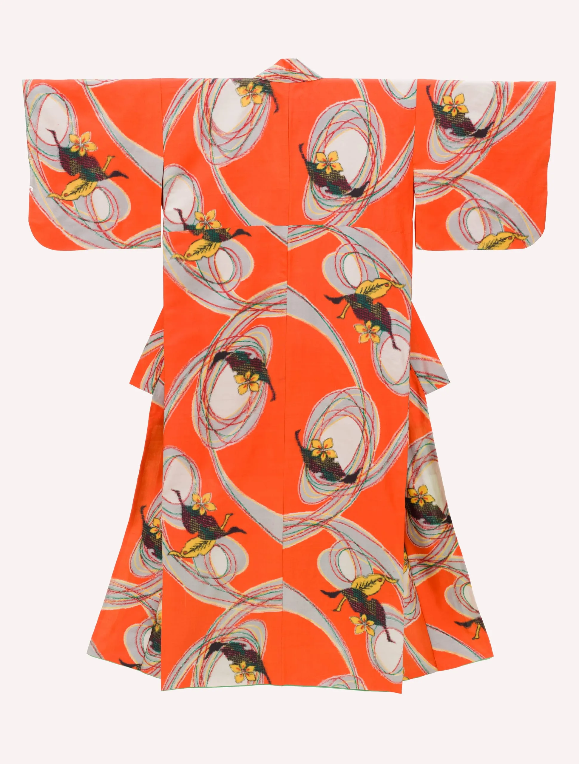 - Woman’s Kimono with Flowers, Leaves, and Abstract Wind Pattern