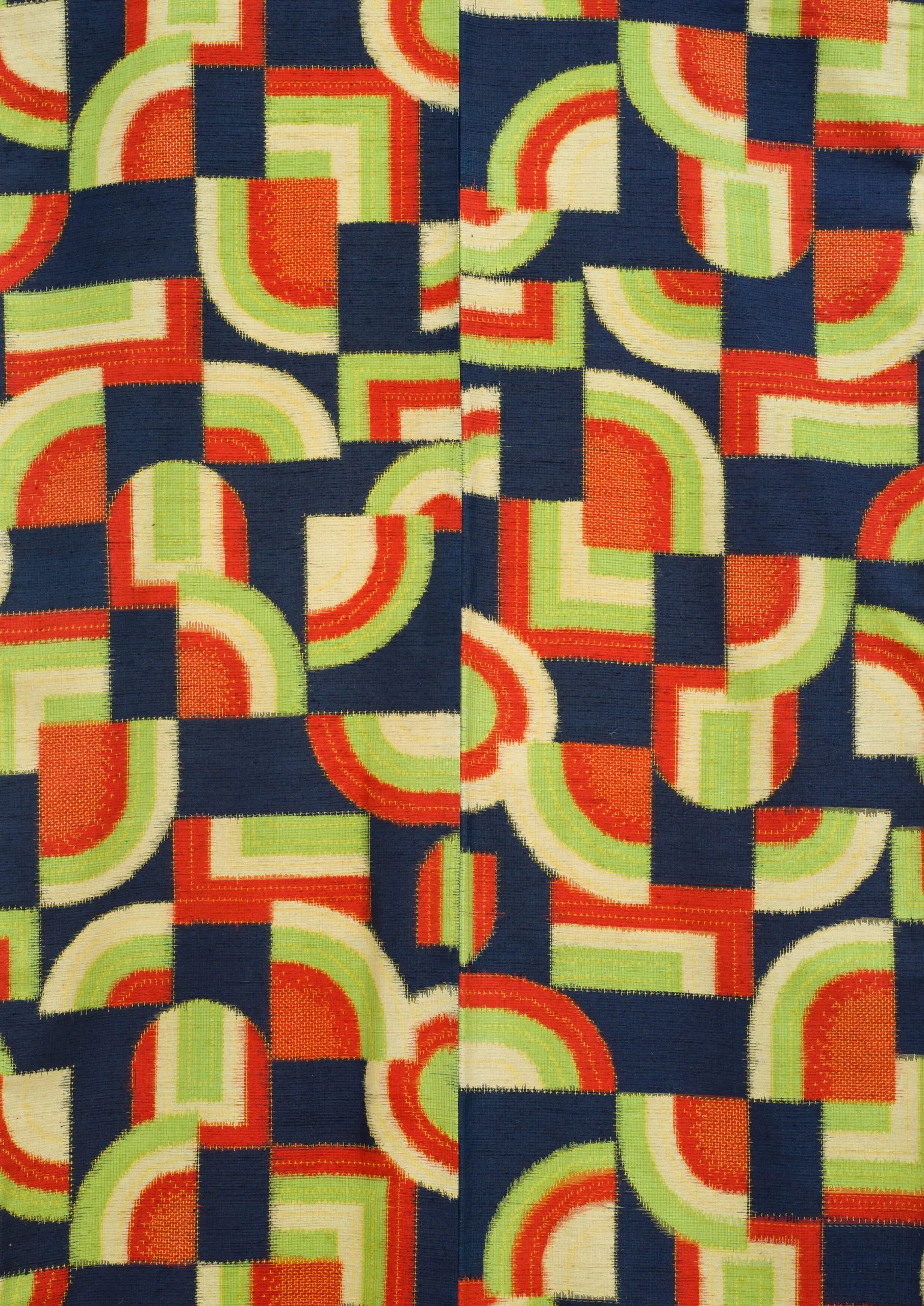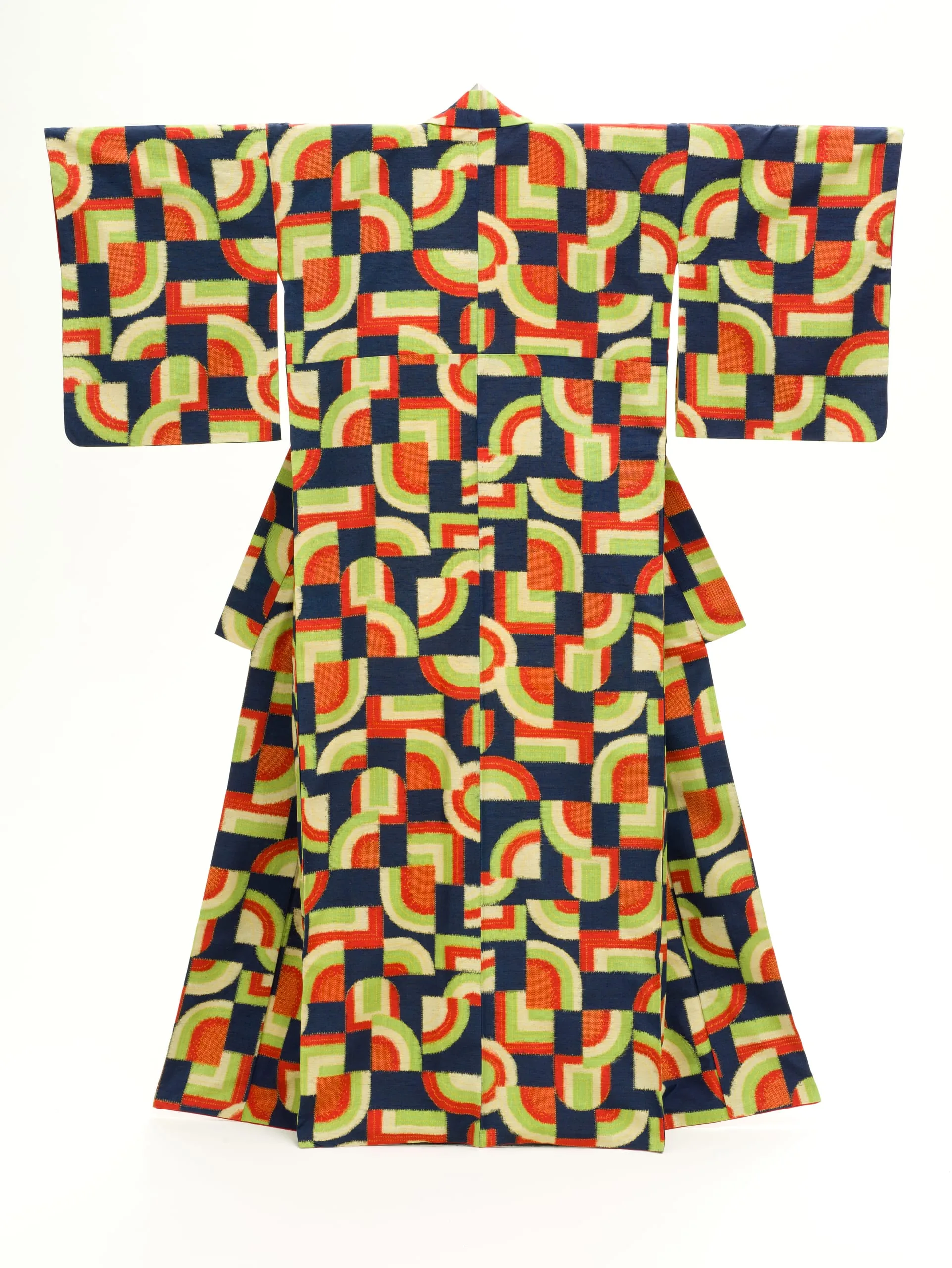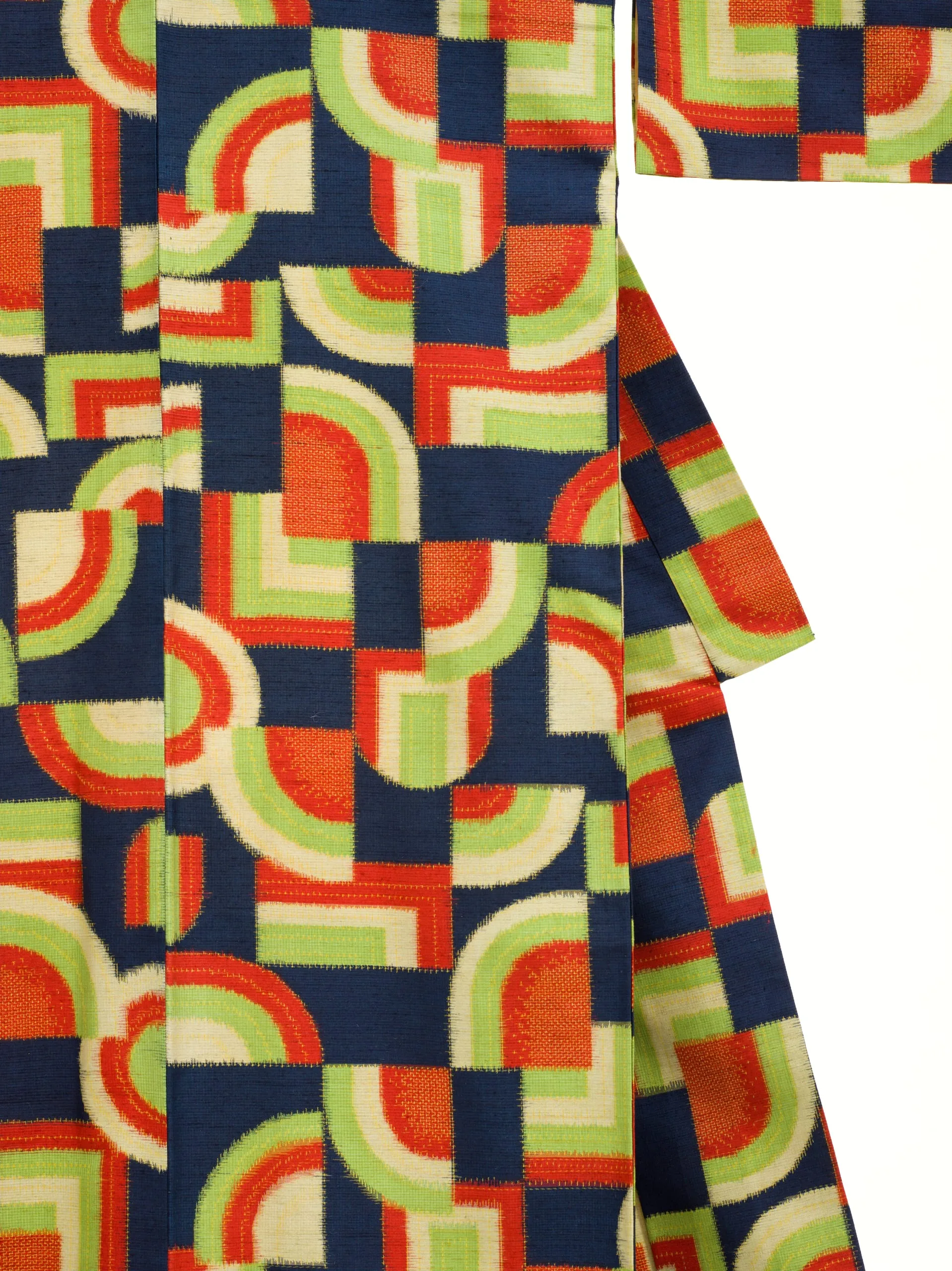 - Silk plain weave (shin-ōshima), clamp-resist-dyed warp and weft (itajime-kasuri)
