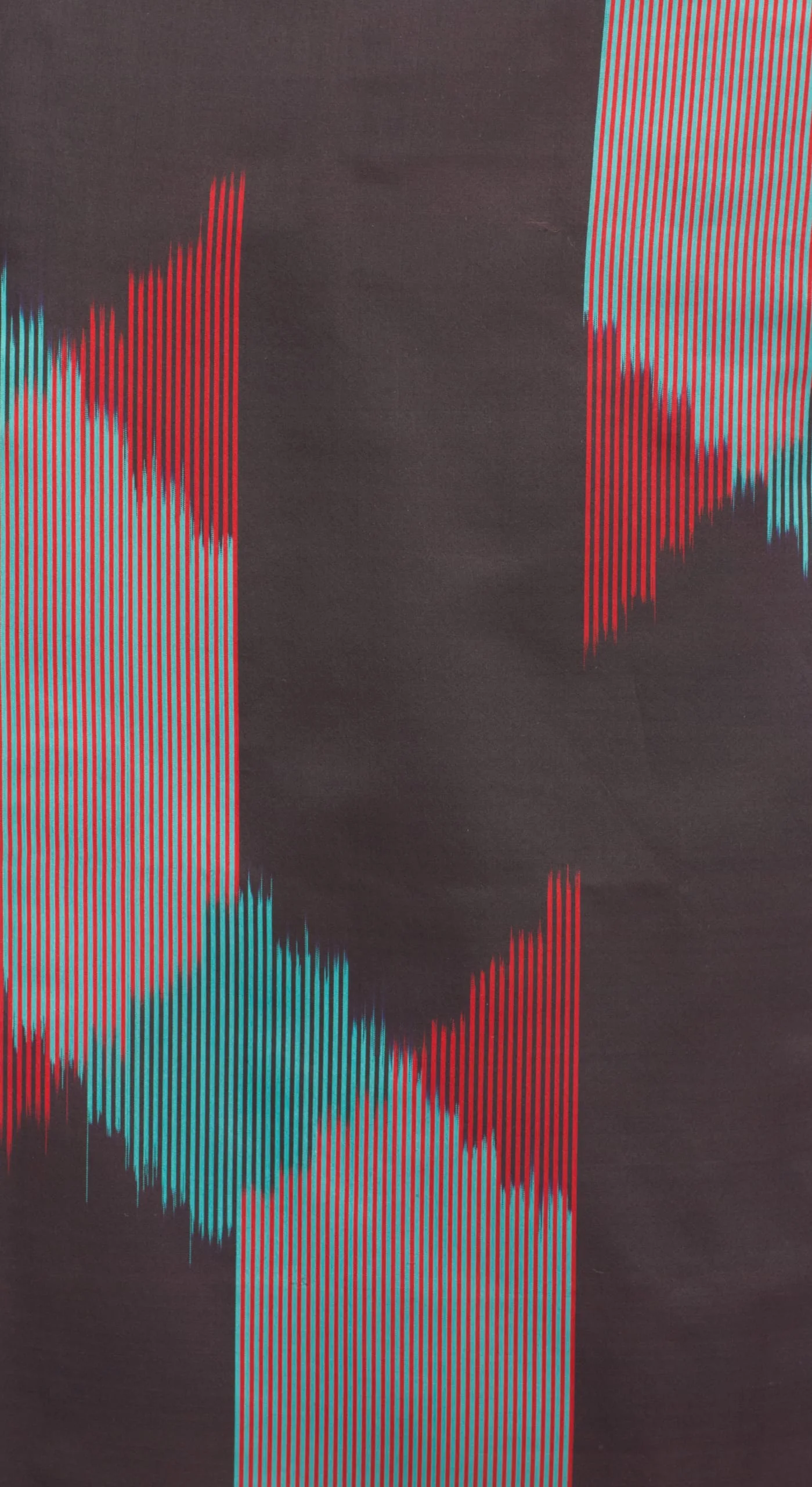 - Silk plain weave with tie-resist-dyed warp ikat (tate-kasuri)