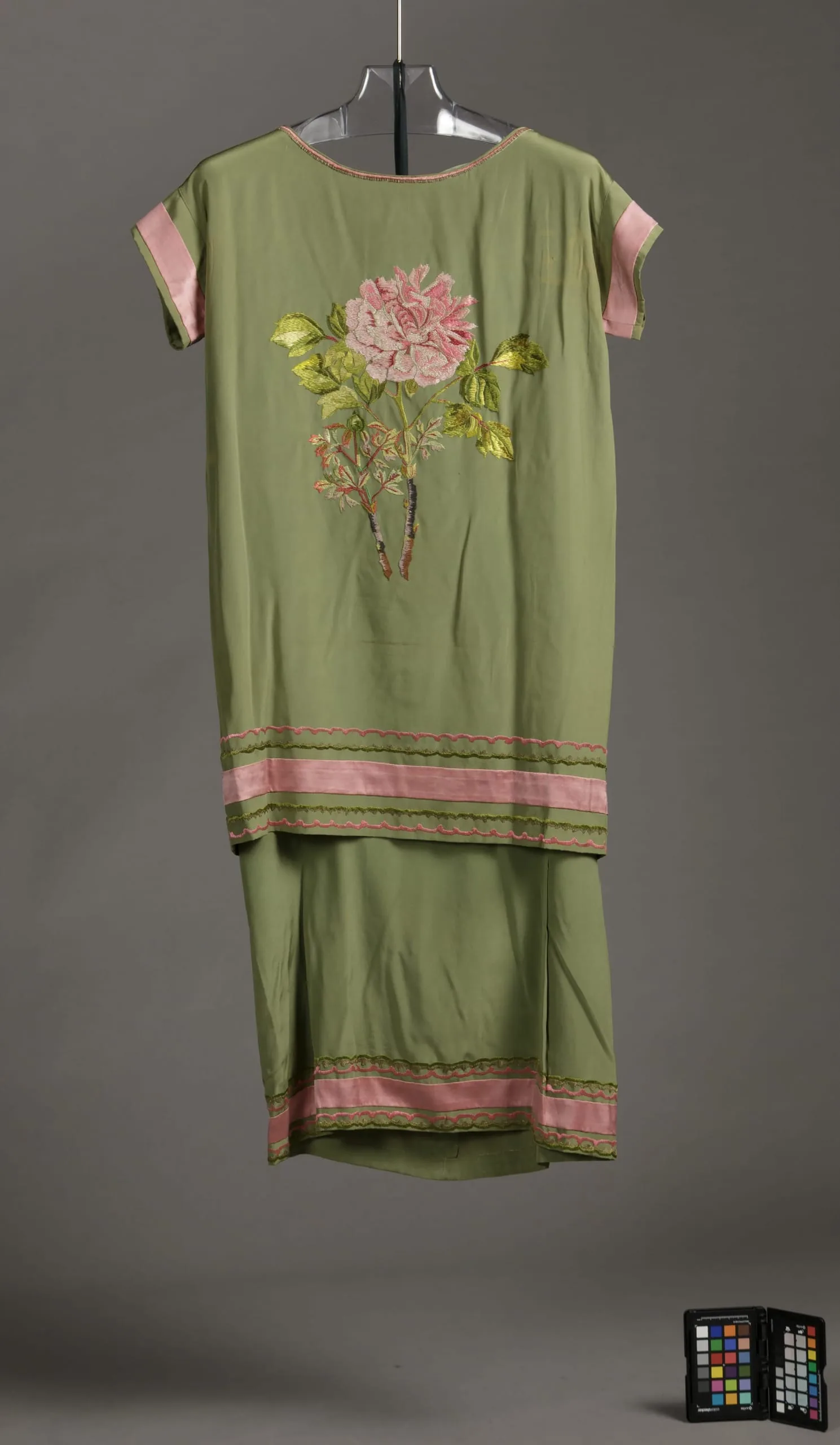 - Silk plain weave (crepe) with silk embroidery and silk satin